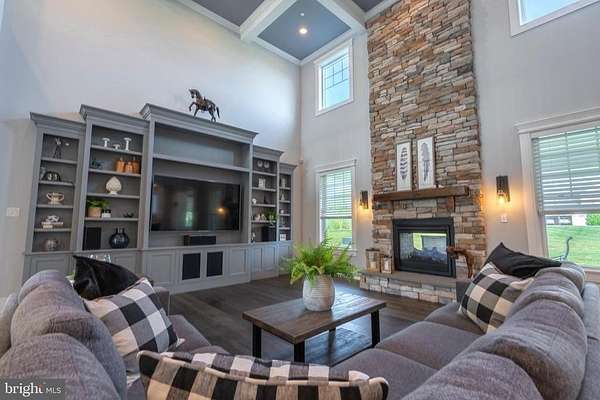 Welcome to 1161 Upper Stump Road, an extraordinary 4-bedroom, 5.1-bath luxury estate perfectly positioned just moments from Lake Galena and tranquil Peace Valley Park, and only minutes from the charm and culture of Doylestown. Set on 2.54 bucolic acres, this remarkable residence blends timeless architecture with today's most sophisticated amenities, delivering an elevated lifestyle of comfort, elegance, and effortless entertaining. From the moment you enter, the home's exceptional craftsmanship is evident in the coffered ceilings, bespoke millwork, wide-plank hardwood flooring, and multiple fireplaces that create warmth and character throughout. A fully integrated smart home system enhances everyday living, featuring 9-zone Sonos audio, security, and seamless remote control of lighting, doors, and garage access. At the heart of the home, the gourmet Eat-In Kitchen is both stunning and functional. Custom cabinetry with integrated LED lighting pairs beautifully with professional-grade appliances, including a 60' dual-fuel Wolf range with double griddle, Sub-Zero refrigeration, wine storage, beverage coolers, and more. A dramatic double-thick granite island anchors the space, offering generous seating, storage, and a striking focal point for gatherings.The first-floor Primary Suite is a private retreat, highlighted by a vaulted ceiling with custom wood detailing, a cozy fireplace, and an expansive custom walk-in closet with organizing system. The spa-inspired bath offers heated floors and towel rack, a soaking tub, dual vanities with built-in storage, and a luxurious dual-entry shower with multiple body jets for a true resort experience. Upstairs, each bedroom features its own en-suite bath, ensuring comfort and privacy for family and guests alike. A spacious bonus loft with custom woodwork and sunlit dormers provides flexible living space perfect for a lounge, office, or creative retreat.The fully finished lower level, spanning approximately 2,400 square feet, is designed to impress. Styled as an authentic Guinness-inspired Irish pub, it features a custom walnut bar, tin ceiling, brass foot rail, and premium beverage systems. This level also includes a Dolby 7.1 surround theater, private gym, full bath, and multiple spaces designed for unforgettable entertaining. Need even more space? The unfinished 3rd level is just waiting for your creative ideas: extra bedroom space, media space, flex space, golf simulator, or simply storage space. Outdoor living is equally refined, with a covered patio complete with fireplace, built-in television, ceiling fans, and integrated audio - creating a seamless extension of the home. The beautifully landscaped grounds offer privacy and space to relax, entertain, and enjoy the natural surroundings. There are so many more amazing rooms, features, and useful upgrades in this home that we simply couldn't fit them all in this description. Please refer to the attached detailed list of upgrades and features for the complete picture of everything this remarkable property offers. Ideally located with convenient access to Philadelphia and New York, this is a rare opportunity to own a truly exceptional property in one of Bucks County's most desirable settings.
