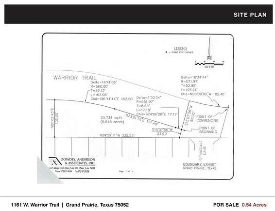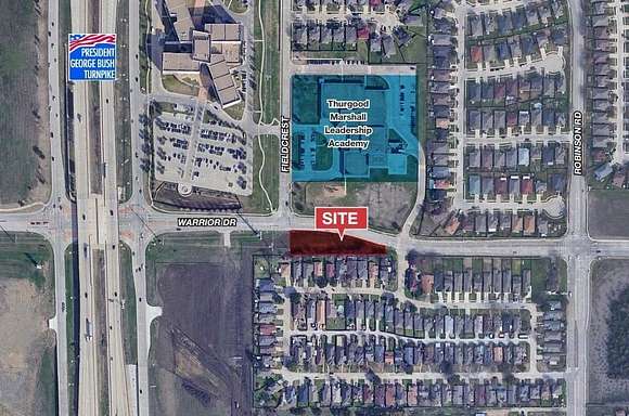 Strategically located on W Warrior Trail, right next to President George Bush Pkwy, this prime land parcel is zoned PD-237A, allowing for single-family, multi-family residential, and commercial use. Commercial development is the best use for this site. Positioned within the SH-161 Corridor Overlay, the property offers great road frontage and visibility. Residential homes are situated behind the plot, making it an ideal location for a variety of business ventures.