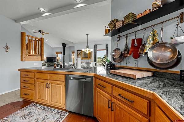 Justin D Osborn, The Wells Group of Durango, LLC, O: 970-946-3935, justin@wellsgroupdurango.com, http://southwestcoloradoranchbrokers.com/: 2064 sq ft custom home on 10 private acres. No Covenants/No HOA. Vaulted ceilings with an open floorpan, and the master on the main level with patio doors that lead out to the hot tub. Wood burning stove (with plenty of wood on-site) for those chilly Colorado mornings. Air conditioning is in place for those few weeks you need during the summer months. 2 bedrooms with a large loft that is currently a 3rd bedroom, but could also be an office, game/craft room, or flex space. In addition to the 2 car garage, there is also a storage shed with lean-to that provides plenty of storage for firewood. Only 6 miles to the Durango/La Plata County Airport, 9 miles to Ignacio, 20 miles to Durango, and 28 miles to Aztec, NM via an easy Hwy 550 commute. Low annual taxes of only $1,411. Located at 6715' elevation with good year-round county maintained access. 3rd bedroom is a loft but could be framed in as a bedroom as the septic system is permitted for a 3 bedroom home.