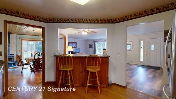 Escape to your own private 30+ acre paradise! This charming 3-bedroom, 1.5-bath home sits on an expansive and breathtaking property featuring a deep spring-fed pond with fish, livestock pastures, mature woods, and ample tillable farmland perfect for crops or hobby farming. Step inside to an inviting open-concept layout with a beautiful kitchen, spacious dining area, and a large living room that flows effortlessly for everyday comfort. A 23' x 24' sunroom steals the show--an incredible space for relaxing, entertaining, dancing, or simply soaking in panoramic views of your serene surroundings. Stay warm all winter with both a wood stove and a furnace, giving you flexible heating options. Outside, this property is a dream for outdoorsmen, homesteaders, and anyone seeking peace and privacy. You'll find, Pole barn with water, electric, heat, and a heavy-duty hoist. Horse barn with water and electric. Four additional outbuildings with electricity, perfect for storage and equipment: wood shed, tractor barn, potting shed/play house, and storage shed. Deep, clean pond with fish and a paddle boat included. Wildlife galore--big bucks, does, turkey, and more! Whether you're looking for a working homestead, a hunting retreat, or a tranquil country getaway, this unique property delivers unmatched beauty, functionality, and rural charm. A rare opportunity to own a slice of pure countryside bliss!