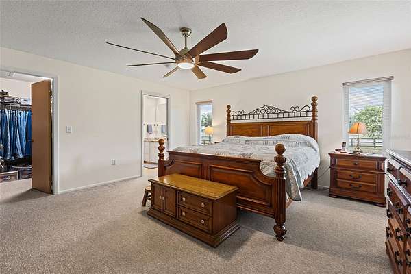 - Ceiling Fans(s), Eat-In Kitchen, Solid Surface Counters, Solid Wood Cabinets, Split Bedroom, Thermostat, Walk-In Closet(s), Window Treatments