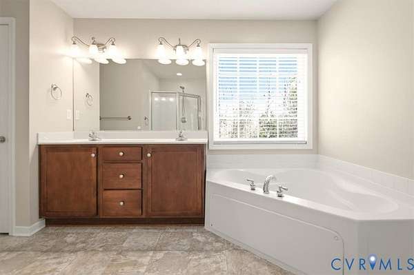 - Bath In Primary Bedroom, Bay Window, Breakfast Area, Ceiling Fans, Double Vanity, Fireplace, Laminate Counters, Walk In Closets