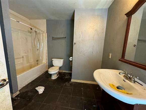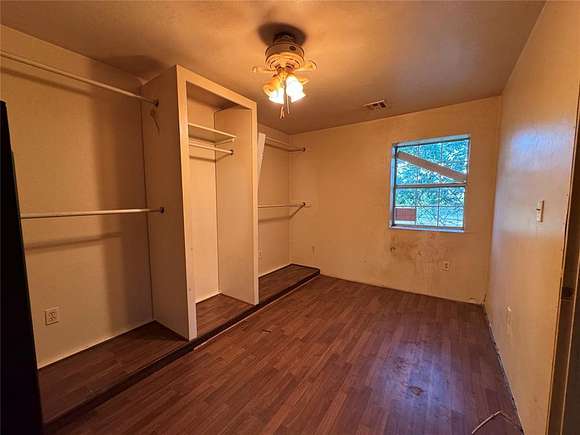 Calling all investors and homeowners who are not afraid to put in some sweat equity! This great 1 bedroom Barndominium has so much potential! The living spaces are extremely large in this home and it will make for great entertaining! This home also have 5 beautiful acres with a pond that has never gone dry. Also, has a 1200sq ft garage space. Home was previously a 2 bedroom but 2nd bedroom has been converted into a large closet. Currently the washer/dryer is in the garage but was originally in the large bathroom. A new air conditioner was purchased but never installed and goes with the property. Home is plumbed for propane in the kitchen; however propane tank has been removed. There is a second utility pool and meter on the property. Check out this one soon! All parties to verify all information. Sold strictly AS IS.