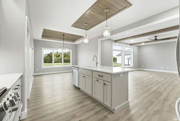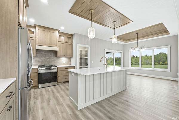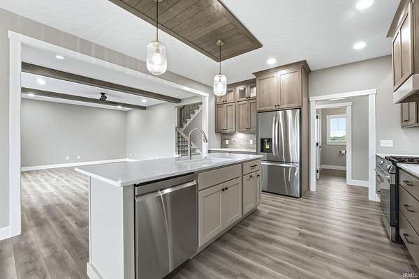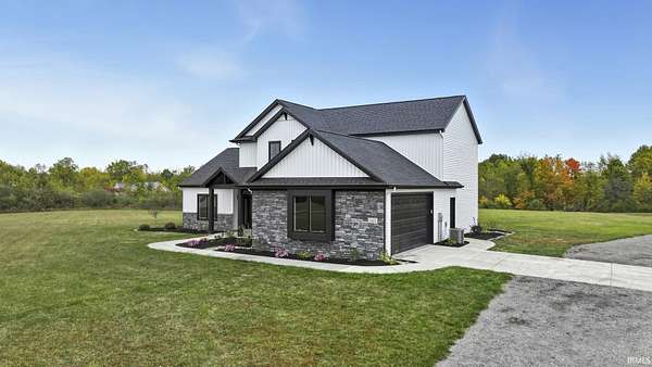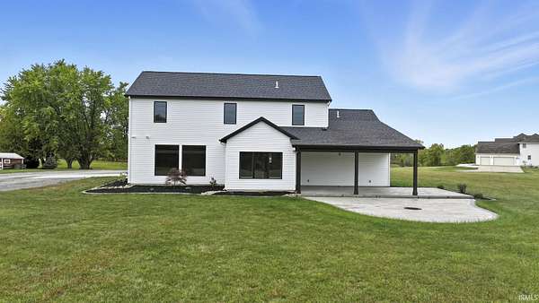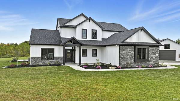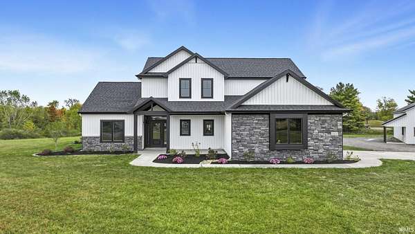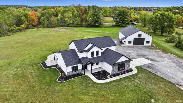 Experience modern country living at its finest! This brand new home by McClurg Builders offers over 2,600 sq ft of thoughtfully designed living space on 4.5 acres. Featuring 4 bedrooms and 2.5 baths, the main level includes a spacious primary suite with dual closets, a double-sink vanity, and a stunning tiled walk-in shower. The gourmet kitchen is a showstopper with custom floor-to-ceiling soft-close cabinetry, quartz countertops, a tile backsplash, walk-in pantry, and all new LG stainless steel appliances. Upstairs, you'll find three generously sized bedrooms (one with a walk-in closet), a full bath, and a versatile loft/lounge area. Step outside to a huge covered patio with stamped concrete and a built-in firepit -- perfect for entertaining or relaxing by the fire. The home also features brand new landscaping with concrete edging and a welcoming front porch. The attached two-car garage is finished with beautiful polyaspartic floors, and the property includes a 40x54x16 pole barn built in 2021 -- ideal for storage, a workshop, or hobbies. Every detail has been carefully crafted for comfort, style, and functionality -- this home truly has it all!
