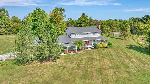 Custom built, one owner executive home on 15 acres. Wooded and pastural acreage includes 3 ponds, used for irrigation to a greenhouse and large garden plot. A covered & screened picnic porch with electric and a bathroom overlooking a pond is a great entertainment area. The Garden shed/chicken coop is ready for a new flock. Also includes a 25 x 30 pole barn w elec. The home features a wrap-around, tiled front porch w gazebo. You enter through a 2 story foyer. The tiled great room has a 21 x 8 sunroom attached. Could be used as another greenhouse. The kitchen has wood cabinets, a bar area and large area for the table. A formal dining room sits off the kitchen and then a large living room with wood fireplace . Walks out onto the gazebo area of the porch. A great place to sit and observe nature! 3 bedrooms and 2.5 baths, ready to move in to.
