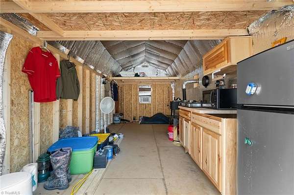 Rare 10.58± wooded acres on the NC/VA line — literally. Property is gated with a driveway to a cleared area and offers excellent hunting and privacy. A 10x20 building serves as a heated/cooled hunting cabin with electricity, kitchen space, and an artisan well (dug a few years ago) supplies highly regarded water. Four hunting blinds of varying sizes — including a larger 4-person blind, multiple 2-person blinds, and a mobile blind — are already in place. Heavily treed terrain supports abundant wildlife and provides a perfect setting to hunt, camp off-grid, or build your forever home. Convenient access yet secluded feel. Schedule an appointment today to explore this unique tract and imagine the possibilities.