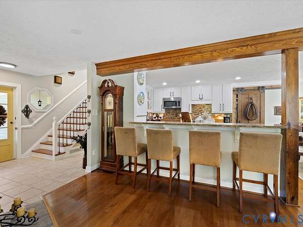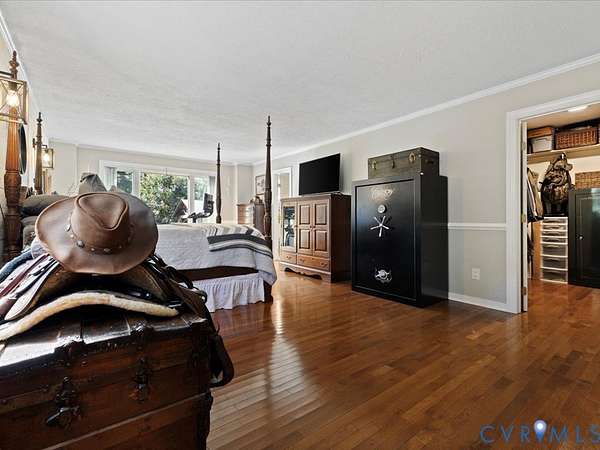 Close your eyes and imagine spending warm summer days around your own private pool situated on a very private 16 acres. Or maybe watching your horses frolic in the snow covered pastures in the winter months, or roasting marshmallows for S'mores over the firepit. Or maybe planting a bountiful garden in the raised beds? Imagine only needing to step out your back door to ride your horse. Thsse are the future memories you will have at this beautiful home in the heart of Chesterfield. This home is located just minutes from all the great restaurants and stores in Midlothian. It has a 1st Floor Primary Bedroom plus and additional 3 or 4 bedrooms and has plenty of room for everyone. The 1st floor has a large open Great Room with gas fireplace that is flooded with natural light. The updated Kitchen features granite counters, stainless appliances, a glass cooktop, tile floors and backsplash. The kitchen opens on one side to the Great Room with a Breakfast bar, and the other to the Dining area. There is a glassed in "3-Season" porch off of the kitchen which overlooks the patio, gardens, and pastures. The oversized 1st floor Primary Bedroom has hardwood floors, a large closet, and large attached bath. One of the three additional bedrooms upstairs has hardwood floors, and two have newer wood-style LVP. There is a large bonus room that would make a great guest room or playroom plus two additional bathrooms. For horse lovers, the best part of this home lies outside the four walls of the home. A 5-stall barn with tack room opens to three large pastures/rings. The property can accomodate up to 9 horses and offers a great opportunity for boarding. Behind the house is a brick patio with covered seating area, a deck with above ground pool, and beautiful gardens, including raised beds for growing your own herbs and vegetables! All you need to do is start packing...the owners have done all the work for you including tankless hot water heater, new roof & skylights, new bathrooms, mini-split, air handler for HVAC, and pool liner.