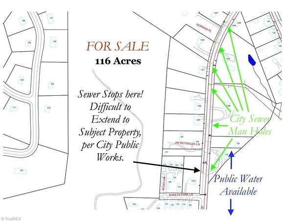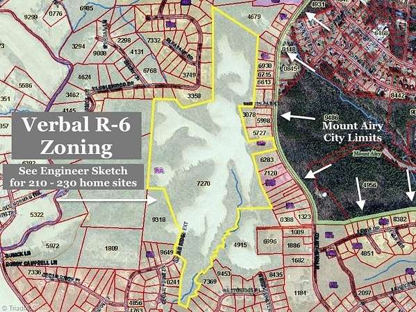 Est $7,805/mo116.35 Acres for proposed 168 unit development in Mount Airy, North Carolina. Zoned RA with proposed R-6 zoning. Public water and sewer is available along Franklin road. The city limit is located directly across the street from entrance into this property. Franklin fire district, Stewart's Creek Watershed, multiple streams, creek, wooded and cleared, level to gently rolling land with mountain views. See maps/photos for more details. Call today!