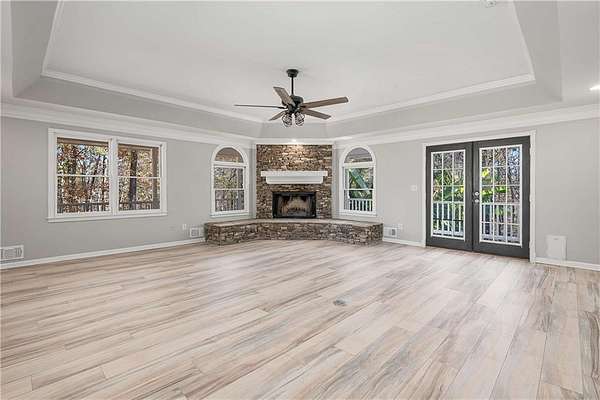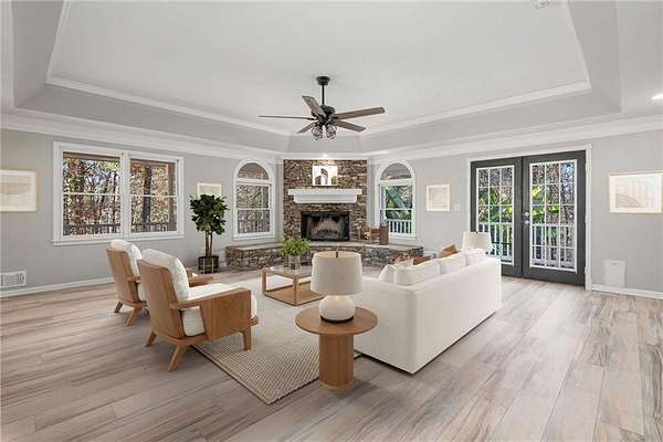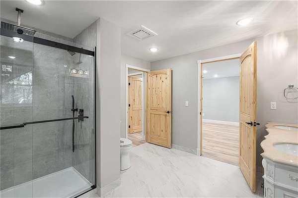 Welcome to your private resort-style estate - a one-of-a-kind, impeccably crafted retreat where every detail was thoughtfully designed for luxury, comfort, and lifelong enjoyment. Nestled on a secluded, park-like lot with mature trees, cool streams, lush greenery that stays vibrant all summer, and absolute privacy (no sight or sound of neighbors), this property feels worlds away yet offers every modern convenience. Gated entry, a full wrap-around porch, a sparkling pool, powered RV pad, and parking for a crowd make it perfect for entertaining or simply escaping the everyday. Step inside and immediately notice the difference: premium waterproof LVP flooring with acoustic backing (STC 56) flows seamlessly throughout - no unsightly transition strips, perfectly flush with bathroom tiles, and installed with a lifetime residential warranty. This is flooring so durable it dulled professional saw blades during installation; once you love the color, you'll never replace it. The heart of the home is the stunning master kitchen - ready for the exact professional-grade appliances of your dreams - flanked by two additional full kitchens (one in the charming separate apartment and one in the basement). With six bedrooms, four true master suites (one on each level plus the apartment), and a five-car garage spread across three buildings, there's room for everyone and everything. No corner was cut: - High-end large-format tile shower walls typically seen only in custom luxury builds - Plywood-box cabinetry (never particleboard or MDF) - Tennessee Pine interior doors - Bombay Mahogany-stained traditional oak basement stairs - Dimmable LED disk lighting and a digital-timer bath fan in the lower level - Even the base trim was specially sourced for a polished, custom-millwork look The walk-out lower level feels like its own private wing, complete with a brand-new never-used kitchen, fitness room, and a perfectly placed outlet in the master bathroom at counter height ready for your future makeup vanity. From the moment you drive through the gates you'll understand why the sellers say, "If we hadn't been promoted, we'd live here until the day we died." This isn't just a house - it's a move-in-ready legacy property that needs nothing but you and your personal touches. Come experience resort living every single day. You'll never want to leave.