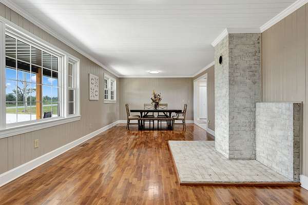 Welcome to your dream farm! Nestled on almost 15 acres with the perfect mixture of flat pastureland, gentle rolling wooded land with a picturesque pond, this property offers the perfect blend of modern comfort and country living. The fully remodeled 2,050 sq. ft. home with a basement has been thoughtfully updated inside and out. Step inside to find a spacious layout featuring a large kitchen with abundant counter space, an island for gathering, brand-new appliances, fresh paint, updated bathrooms, new fixtures, new roof and a brand-new HVAC system for year-round comfort. Outside, the property shines with brand -new fencing and multiple gated access points, making it ideal for livestock, horses, or simply enjoying the wide-open spaces. A brand new 30X 30 barn with concrete floors and (2) 14-foot side sheds offers endless potential for equipment storage, workshop space, or agricultural use. Relax and take in the beautiful views of your land from your own backyard. or explore the possibilities this versatile property offers. Whether you're looking for a working farm, a hobby retreat, or a peaceful escape, this property truly has it all -- modern upgrades, stunning acreage, and endless possibilities.