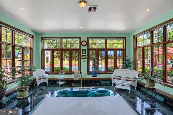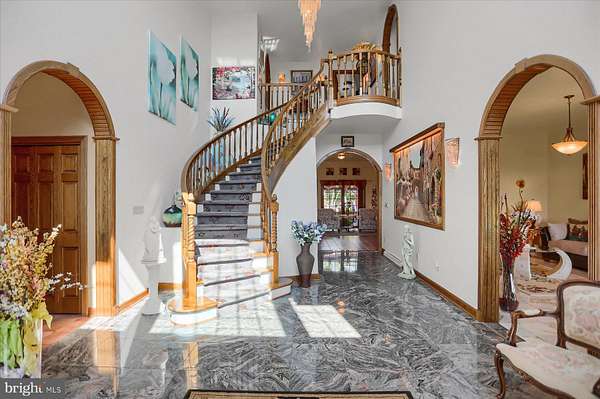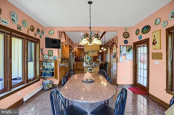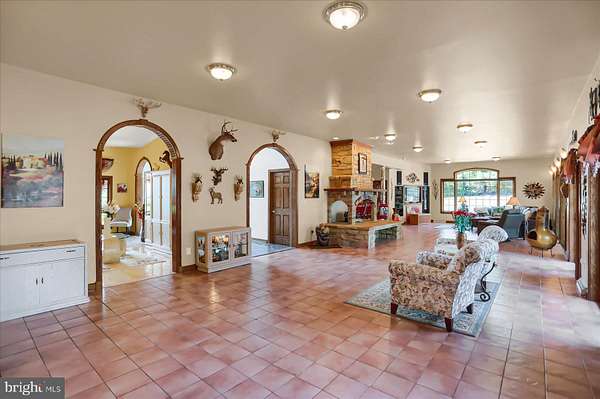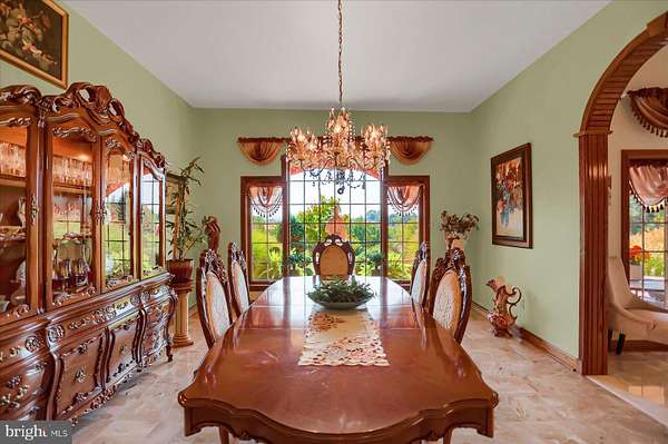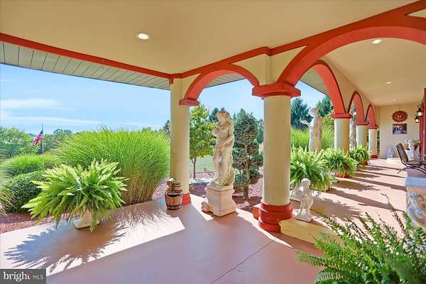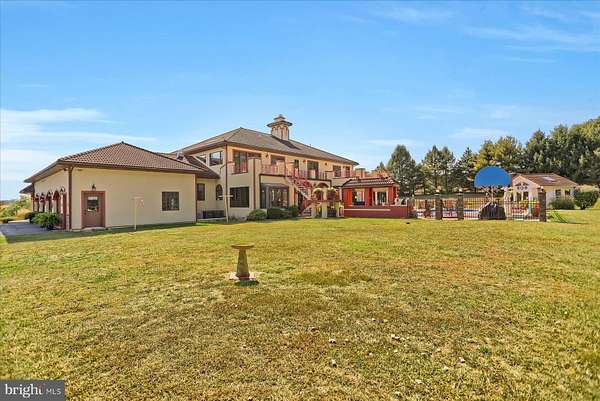Welcome to this extraordinary Mediterranean-style estate set on over 7 private acres. A long, private lane leads you to this pristine residence, where classic design, elegant finishes, and thoughtful details make it a true one-of-a-kind property. The home's exterior, finished in elegant Dryvit with stunning pillars and archways, adds to its Mediterranean character and charm. This home was built for entertaining, with multiple gathering spaces including a great room with a wet bar and gas fireplace, a spa room with a large hot tub, and an exercise room (or possible 7th bedroom) with an attached bath and steam sauna shower. The craftsmanship throughout impresses, from solid oak doors and archways to marble, ceramic, and granite finishes. For culinary enthusiasts, the residence features not one but two kitchens. The main chef's kitchen on the first floor includes a six-burner gas cooktop with built-in grill, double gas Viking ovens, and two pantries-a true delight for any home chef. The second kitchen upstairs offers easy access to the terrace and pool area, making entertaining seamless both indoors and out. Offering 6 bedrooms and 6 baths, each bedroom has access to a balcony, ensuring light, views, and a seamless indoor-outdoor flow. The grand primary suite is a retreat of its own, featuring a jacuzzi, large walk-in closet, and private dressing area, with access to a spacious terrace. Step outside to enjoy the resort-style pool with pool house, outdoor bar, and beautifully fenced yard, perfect for gatherings. Car enthusiasts will appreciate the oversized four-car garage, with one bay offering direct drive-in access to the lower-level basement and wine cellar. The basement itself includes a full bath, ample storage, and dedicated space for a workshop or hobbies. Every aspect of this home, from its arched architectural details to its balconies with sweeping views, was designed to blend comfort with grandeur. With room to relax, entertain, and enjoy, 1164 Grangers Road is truly a Central Pennsylvania paradise.