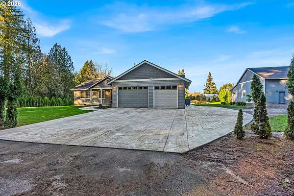 This exceptional one level home showcases 4 beautifully spacious bedrooms with custom closet organizers, and a versatile den, ideal for a home office, craft room or a guest retreat. Brazilian wood flooring complements the vaulted ceilings which lead into an expansive quartz kitchen island with abundant storage. A spacious pantry and picturesque backyard views. A well designed laundry room offers exceptional storage and functionality. Set on a serene 2.36 acres corner lot, the property also features an impressive 35X56 shop with power, a stunning outdoor deck with a fire pit for elevated entertaining with an enclosure perfect for hobby farming or horses. Perfectly blending luxury living with refined rural charm.
