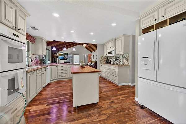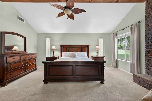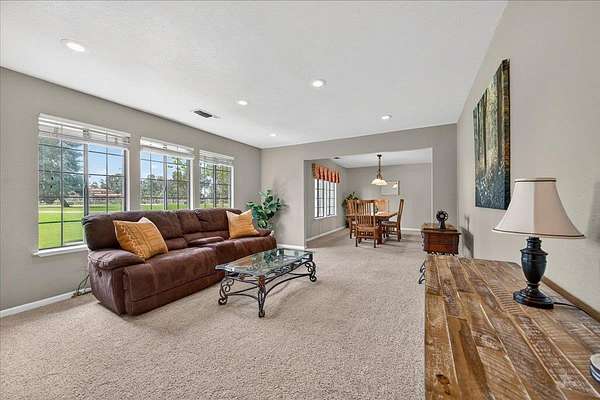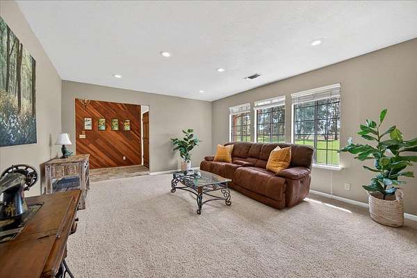 Impressive ranch-style home on 4.8 park-like acres in Clovis Unified School District. This well-maintained single-story 5-bed, 3-bath residence is framed by beautiful mature trees and sweeping country views. Inside, the remodeled kitchen showcases granite countertops, custom cabinetry, and pastoral views over the expansive back pasture. The spacious primary suite is a true retreat, complete with a cozy fireplace, walk-in closet, and private en-suite bath. There is also a 3-bed/2-bath mobile home on-site with separate driveway which currently generates $2,500/month in rental income. It will be delivered vacant, so Buyer may choose to rent it out for extra income or use it as a guest house. A large detached shop and workshop are just steps away from the attached 2 car garage, with generous RV parking alongside. Fully owned ground-mounted solar keeps energy costs low with a minimal annual true-up, and a private well rounds out this beautiful and self-sufficient property. Bed count is different than tax records, if important, buyer to verify
