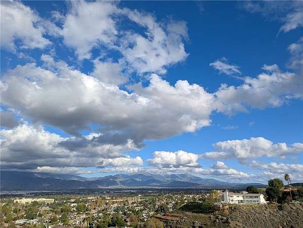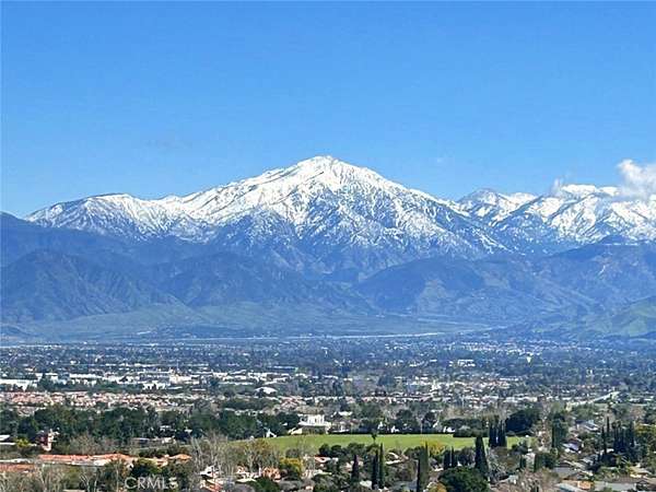 Unobstructed panorama facing north and east, directly framing the San Gorgonio Wilderness and San Bernardino and San Gorgonio peaks. This orientation captures stunning sunlit mountains throughout the afternoon and evening hours, with golden light bathing the peaks as the day progresses. Downward vista over Loma Linda creates a true sense of elevation.
