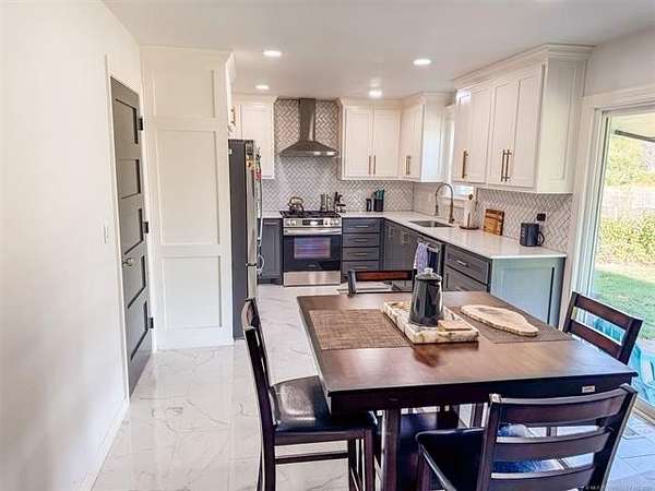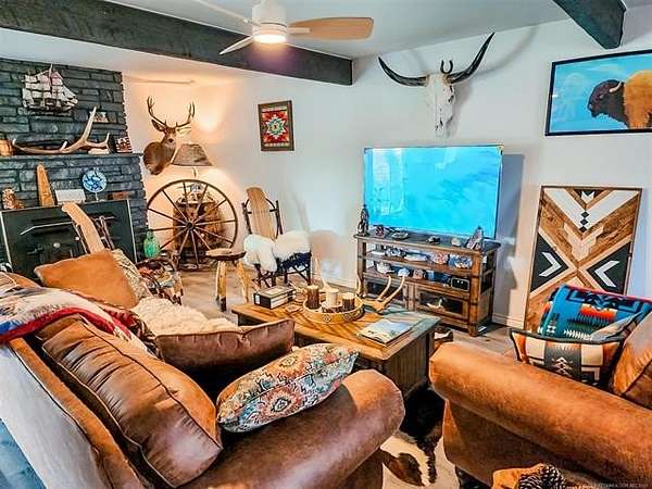 Est $1,822/moPRICE REDUCED $25,000. 5.91 Acres Horse Property located just North of Warner. Newly remodeled home featuring a stunning kitchen with custom cabinets, quartz countertops, tile backsplash, stainless steel appliances, new flooring, fresh paint, and energy-efficient vinyl windows. Bathrooms have also been beautifully updated. The property includes a new chain-link fenced backyard--perfect for kids and pets--plus a pond, pipe fencing, barn with stalls, in-ground storm shelter, and so much more!