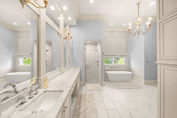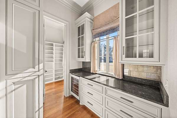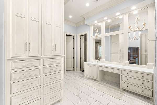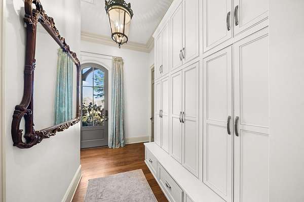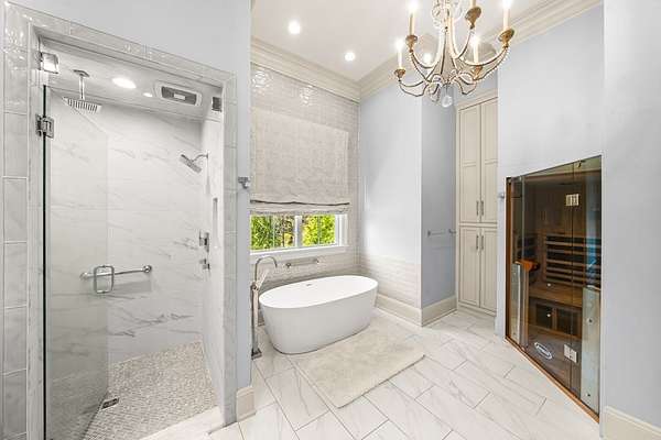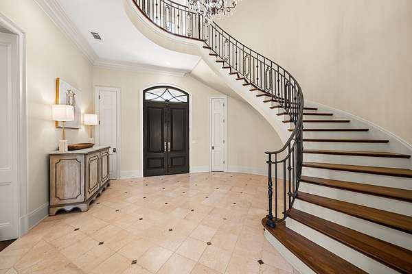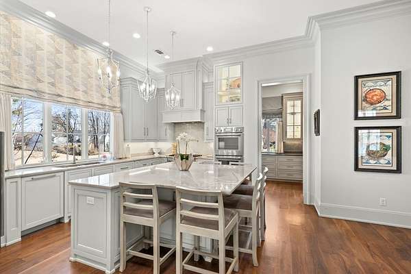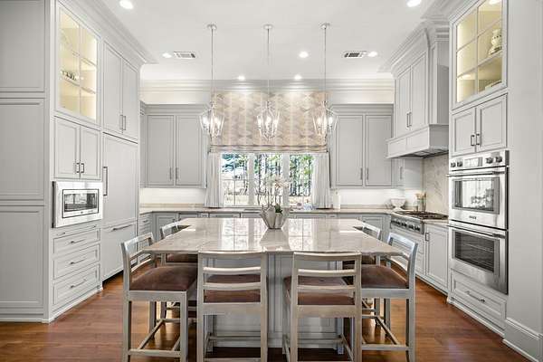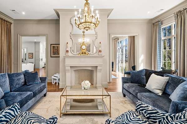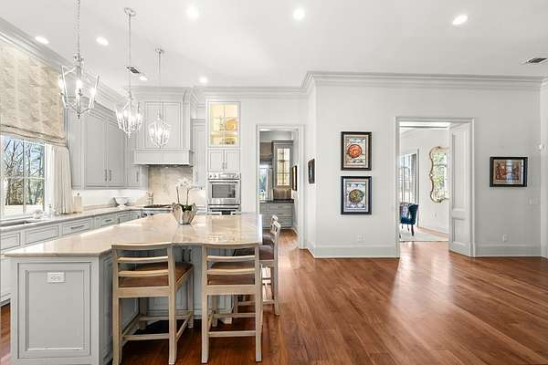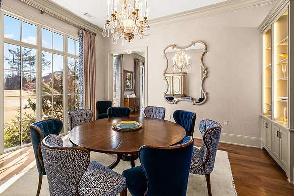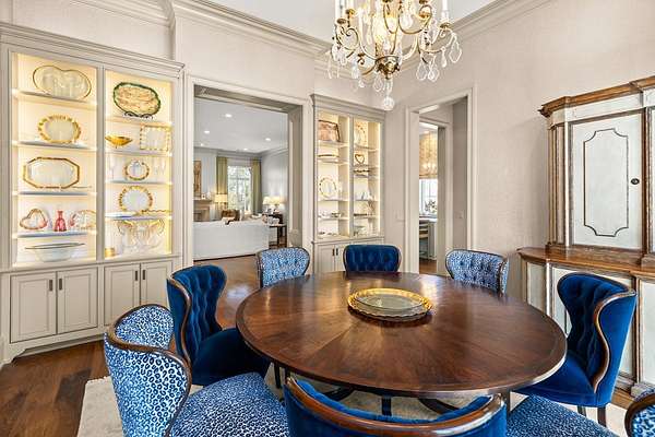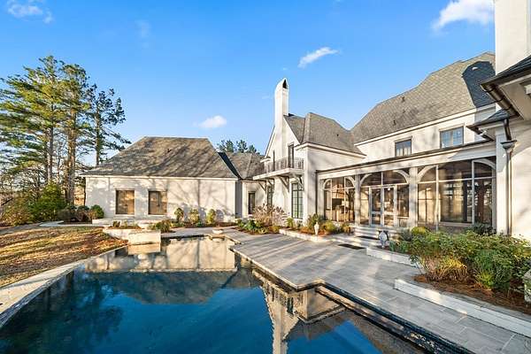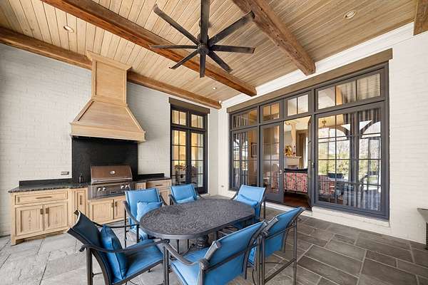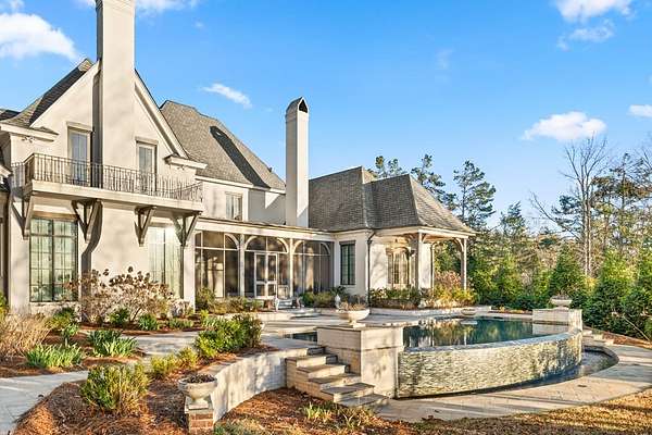 Welcome to 1165 East Wellsgate Dr. This 7,600+ sq.ft. waterfront custom home is situated on 3 lots/2.2 wooded acres in one of the most sought after neighborhoods in Oxford - Wellsgate. This 5BR | 5BA | 2 half-bath | 3 car garage residence was crafted without compromise. Hardwood floors flow throughout, large windows flood every room with natural light, and three wood-burning fireplaces add warmth and character. The primary suite is complete with a sauna, soaking tub, walk-in shower, double vanity, and a showstopper walk-in closet with floor-to-ceiling shelving and sliding ladder. Additional highlights include a Luxury Kitchen with Thermador appliances and walk-in pantry. A dedicated office, workout room, cedar room, pet washroom, elevator, storm/safe room, a substantially sized unfinished storage room. Enjoy outdoor living at it's finest a screened living area, outdoor kitchen, infinity pool with breathtaking sunset views, and an abundance of yard that is fully fenced.