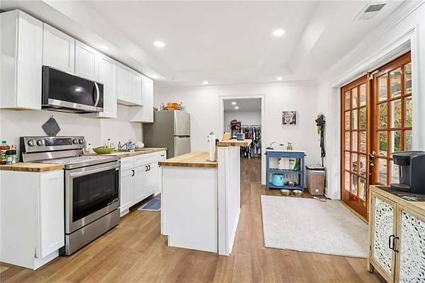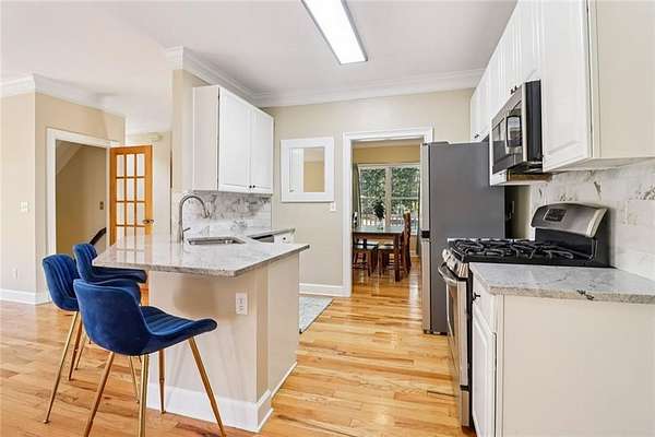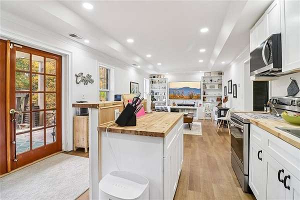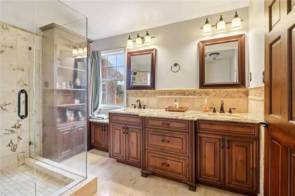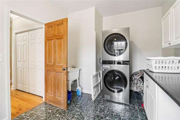 Inside, you'll find a bright sunroom overlooking the serene wooded backyard, an updated kitchen, and a finished terrace level fully equipped with a second kitchen and full bathroom, making it an ideal mother-in-law suite or private guest retreat. Upstairs, the primary and secondary bedrooms offer comfort and generous storage space.