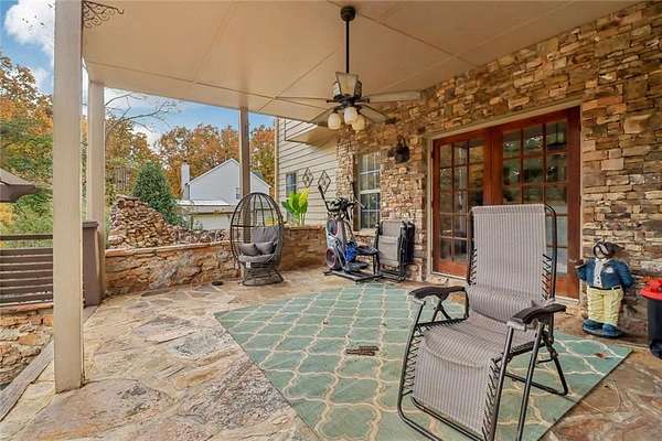 Step outside to your outdoor oasis featuring two koi ponds with cascading waterfalls, a flagstone-covered patio, deck, and covered porch--perfect for relaxing or entertaining on warm Georgia evenings.