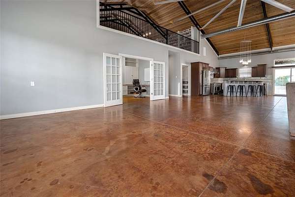 This 10 acre estate is where country meets luxury, where dreams meet reality. This extensive property features a 5706 sq foot home with 6 bedrooms and 4 1/2 bathrooms. As you walk into the home off the covered front porch you will be wowed by the open concept living area, 22 foot vaulted ceilings accented with cedar, high end stained concrete, industrial fan, and mud bench. There are 2 carpeted loft spaces at either end of the living room. One is currently being used as a game room, and the other is being used as a second living room, both have custom built in storage. The French doors lead to an office outfitted with a desk and storage that is perfectly tailored to the space. The great sized kitchen is open and perfect for entertaining. The kitchen is complete is stainless steel appliances, gas range with pasta arm, island, and 5x10 pantry. On the fenced back patio is a chlorine pool with new liner, filter, and pump. The 940 square foot pool house offers a full kitchenette with an electric stove, 1 bedroom, 2 full bathrooms, a living room, and a climate controlled multipurpose 2 car garage. The 30x50 shop is climate controlled with closed cell spray foam insulation, garage doors, 30x30 add on workshop, 25x30 lean to extension, and concrete pad currently being used as a basketball court. The property also offers a 30x40 carport with 14 foot overhead clearance perfect for RVs, a 20x30 barn with garage door, a round horse pen, a pond, and there is an open training arena at the back of the property. This property is completely enclosed with pipe cable fencing and custom gated entry. The possibilities are truly endless with this property. Schedule a showing today and let's make your dreams a reality.