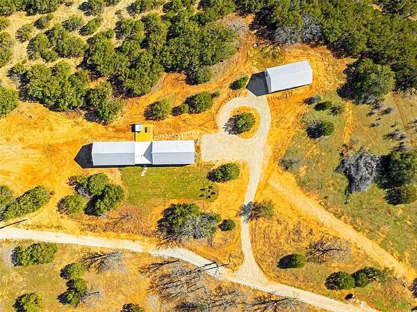 Traveling West on I-20 from DFW you will take exit 363 (Tudor Road). Turn Left at stop sign onto Tudor Rd. Go over the overpass and continue down gravel road for 2.4 miles. pass the first big bear gate, Enter at second gate. Once inside turn right at your first intersection. Property on the right.