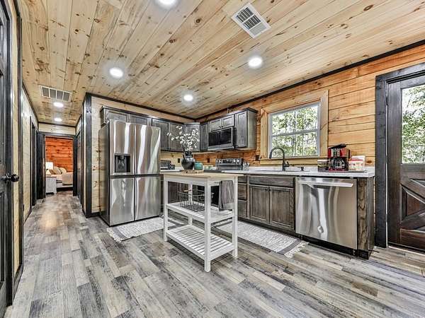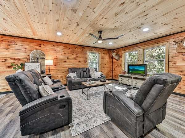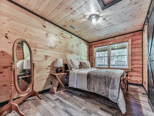 HUNTING CABIN, AIRBNB or PERSONAL RETREAT, this is an incredible opportunity to own 12.5 BEAUTIFUL ACRES and FULLY REMODELED CABIN in Cherokee Co! Below appraised value! It's a steal!** MODERN COMFORT WITH RUSTIC CHARM! This FULLY REMODELED 3-bedroom cabin sits on 12.5 acres of serene, wooded land, ideal for those seeking tranquility and outdoor adventure. Gorgeous hardwoods are abundant throughout the land. The land is crisscrossed with hiking and ATV trails, offering endless exploration! A peaceful creek runs through the property, adding to the natural beauty, while a fire pit invites cozy evenings under the stars. There are also multiple home sites for future expansion, bring the entire family! The property also offers a large, remodeled BARN ready for animals or storage. New stairs to the hay loft makes for easy access. Near the barn is a large, four-board fenced, area that with a little clearing is perfect for your animals! Inside, the warm glow of cedar wood welcomes you throughout, complementing the sleek QUARTZ countertops and stainless steel appliances in the updated kitchen. The large family room provides ample space for gathering, while the spacious breakfast room offers beautiful views of the surrounding nature. The bathroom is a spa-like retreat with a walk-in shower and high-end finishes, ensuring luxury in the heart of the woods. Step outside onto the deck, where you'll enjoy a stunning view of the lush, grassy yard and the surrounding canopy of hardwood trees, creating a perfect retreat from everyday life. This property has endless possibilities and also sits just minutes from Allatoona Lake and is surrounded by over 1,000 acres of raw land, making the wildlife plentiful! This is a perfect retreat to enjoy everyday, expand into a family compound, use as an impressive hunting lodge OR rent out as an AirBNB and turn it into an AMAZING investment! Conveniently located between I-575 & I-75, close to shopping and dining and zoned to the new Cherokee High School opening in 2025! You will not want to miss out on this one!