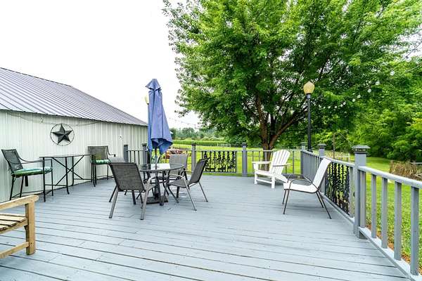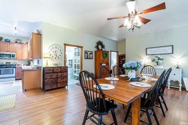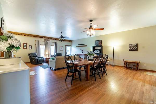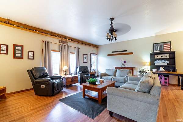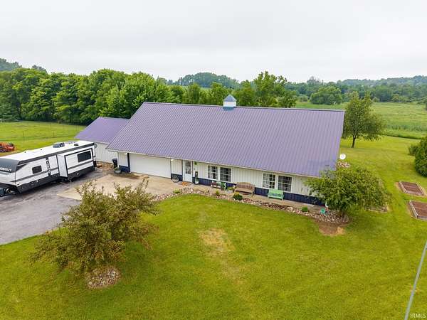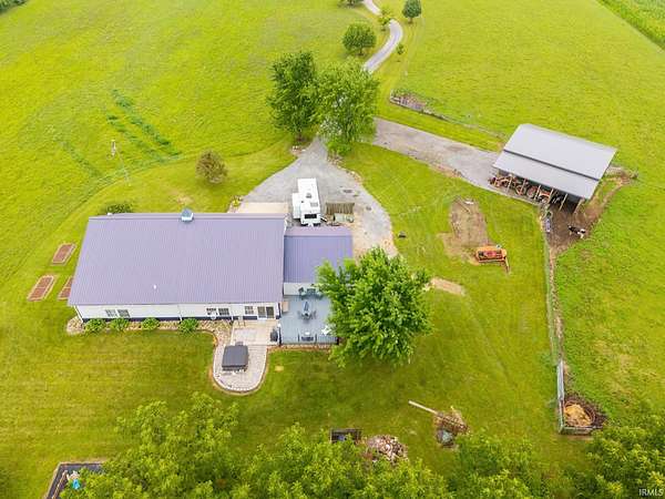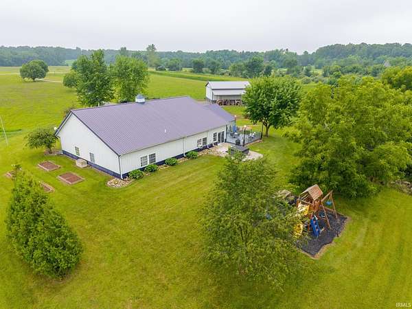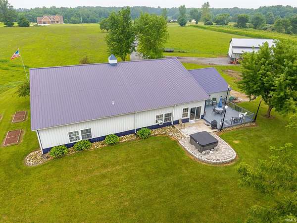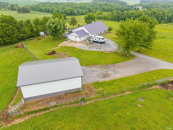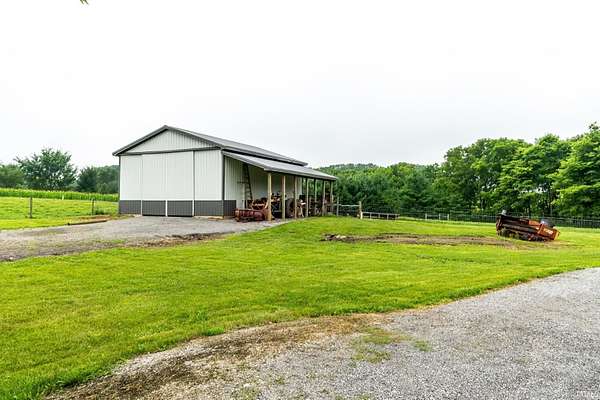 If you've dreamed of country living with a long, beautiful tree lined driveway leading to a home and barn with woods and privacy, this property is for you! Situated on 20 acres (that's never been split), this all electric 4 bedroom/2 bath ranch features an open concept with 10' ceilings throughout, a metal roof, custom cabinets/closets, 8" walls & 36" doors throughout, heated floors, 200 amp service each in both the home and barn, cozy wood burning radiant heating with electric on demand water heater backup, brilliant floor plan with walk through 7x6 pantry from the garage to the kitchen, and a 3 seasons room with a propane fueled fireplace. The exterior is just as impressive with a heated, attached 2 car garage, an additional 28x24 attached garage that was previously used for hay storage, a 40x30x14 pole barn with a loft area and 10x40x12 lean-to, a 2.5 acre fenced in pasture, raised garden beds, a 22x18 wood deck, a 15x10 patio, and a paver stone patio with hot tub. Whether you're a nature lover, logger, or hunter, there is something for everything with trails cut out through the woods that are abundant in walnut trees, pheasant, turkey, deer, and so much more!
