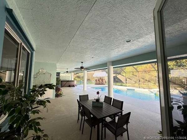 You will fall in love with this home situated on 2+ acres in the equestrian community of Foxwood with EZ access to I-95 for commuters. Coastal elegance meets privacy & tranquility with lush landscaping surrounding the property. This turnkey home offers 3 bedrooms + office, 3 1/2 bathrooms and a large open floor plan. You will love the 2020 built RV/boat storage detached steel insulated building with 100 amp electric service. Features include large front porch with grand entrance and huge screened back porch overlooking pool, spa, hot tub & Tiki Hut Bar. New home roof in Sept of 2023. Other features include fireplace, gourmet kitchen with newer top of the line appliances, induction cooktop, convection oven, 2025 dishwasher, 2025 washer/dryer, 2 zone a/c (master a/c 2025), central vac system, whole house water filtration system, 2024 water pump, 10 hard wired security cameras, 2 HWHs-never run out of hot water plus rear yard is completed fenced & entire property has an electric fence.