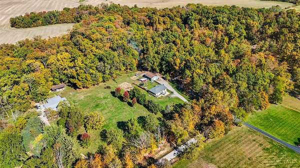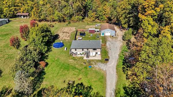 This ranch home delivers! You will love the drive over with beautiful country side scenery. Built on five wooded acres, it has everything you would want. Open living space, walk in closet, adjoining bathroom, full walk out basement with full bath and extra rooms, and much more. A massive 30x40 pole barn with 200 amp service to make your workshop, garage, you name it. Need newer updates? New roof and insulation 2023, heat and cooling 2021, water heater 2025, front side new windows 2025, exterior siding 2023. This home is all set to make your own. Come check us out!