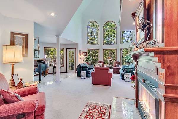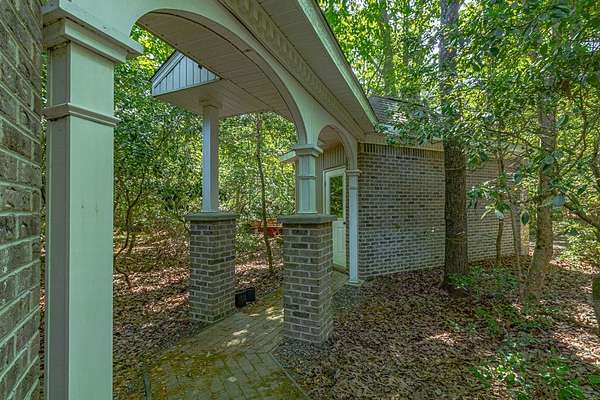 Set along the calm, protected waters of Lowrey's Creek—with quick access out to the Corrottoman River—offers deep, protected anchorage at a private pier designed for serious boating. Featuring multiple slips, 6' MLW, a covered lift, and space to accommodate a sailboat, this is a rare haven for boaters seeking both accessibility and protection in a peaceful, scenic setting. Privately tucked behind a gated entrance, the property spans over 19 acres with 600+ feet of waterfront, creating a truly secluded retreat surrounded by mature trees and natural beauty. With no restrictions and horses welcome, the possibilities here are as expansive as the land itself. The custom-built residence is a one-of-a-kind architectural statement, showcasing high-end craftsmanship throughout. A striking curved brick entrance and dramatic two-story arched foyer set the tone, leading into thoughtfully designed living spaces with soaring 21' ceilings, a grand fireplace, and a stunning two-story library. The versatile floor plan offers flexibility for a variety of lifestyles, with the potential for multiple bedrooms, guest suites, home offices, or creative spaces. Designed with both function and luxury in mind, the property features multiple climate-controlled garages, including a showcase bay, along with a large RV/carport offering ample space for vehicles, boats, or recreational equipment. Outdoor living is equally impressive, with landscaped grounds, gardens, and tranquil waterfront settings. Remarkable setting, delivering a rare combination of waterfront excellence, acreage, and architecture.