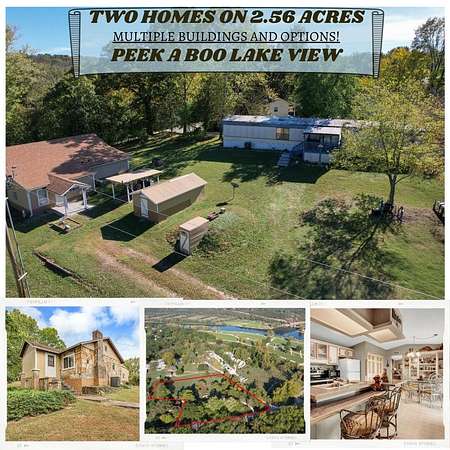 Do you like to fish? Do you like land? Why have one home when you can have two? Whether you're housing your whole crew, investing in rental income, or starting a tiny home project while living on-site--this property has it all!Let's start with the original 1949 home: featuring 2 bedrooms (one non-conforming), 2 living rooms, 2 full bathrooms, and generous storage. The kitchen has a cottage feel and a view out the front to enjoy while working on the dishes! Solid, comfortable, and inviting--perfect for everyday living or a peaceful retreat after a long day.Next, a 1993 Fleetwood mobile home offering 2 bedrooms, 2 bathrooms, and all appliances included. The sliding glass doors open to a deck where you can relax and take in a partial ''peek-a-boo'' view of Bull Shoals Lake.The property also includes two garages and two shops. One shop boasts a concrete floor, multiple power outlets, and a wall-unit AC--ideal for year-round projects. The second offers powered storage for tools and equipment. Added bonuses: a storm shelter, a dry cellar under the home, and a storage shed for the mobile.All of this sits on 2.56 acres with several excellent build sites, making expansion a breeze. With city water, city sewer, and two separate electric meters (one for each residence), functionality meets flexibility.Tucked away from Hwy 76 for privacy yet conveniently located for easy access, this unique property truly offers something for everyone.Come explore the possibilities and see how this versatile property can work for you!See it today!!