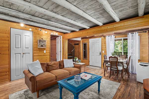 Three Homes and Amenities ~ The estate includes three unique, fully furnished residences, designed to host family, guests, or rental visitors with ease. The Main House(~1,806 sq ft): The largest home on the property, featuring two private bedrooms, a sleeping loft with six beds, and two full bathrooms. Set with great views, it offers wraparound decking, vaulted wood ceilings, and the soothing sound of flowing water nearby. The Middle House(~964 sq ft): A charming, recently updated two-story home with one main-level suite, loft sleeping area, and two full baths. It features a vaulted great room, wood stove, spiral staircase, and private patio space for outdoor dining. The Log Cabin(~926 sq ft): Rustic yet refined, this classic cabin includes two king suites, 1.5 baths, and warm wood interiors. A covered front porch, upper balcony deck, and nearby fire pit make it a cozy getaway. Beyond the homes, the property features a range of additional amenities designed for relaxation and recreation: world-class cedar sauna with wood-fired stove, shower, and lounge area. "Good Vibes Only" game room with ping pong, foosball, and media setup. Private gym/yoga room for fitness and wellness. Multiple storage and utility buildings, carports, and pump houses supporting a domestic well and water filtration system. Every structure contributes to the property's sense of place--functional, inviting, and rooted in the outdoors.