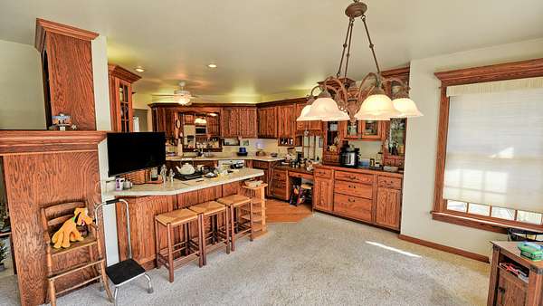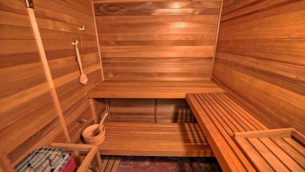 - Ceiling Fan(s), Eat-In Kitchen, Garage Door Opener, LP Tank Rented, Pantry, Sauna, Wet Bar