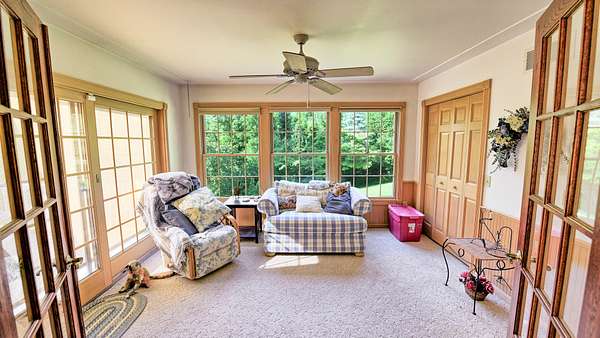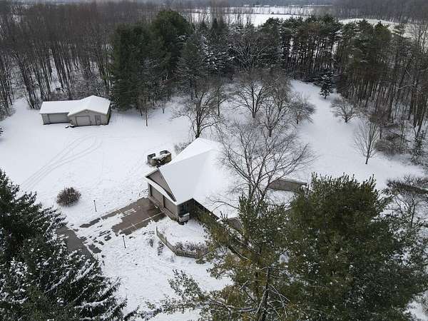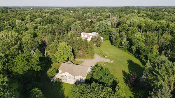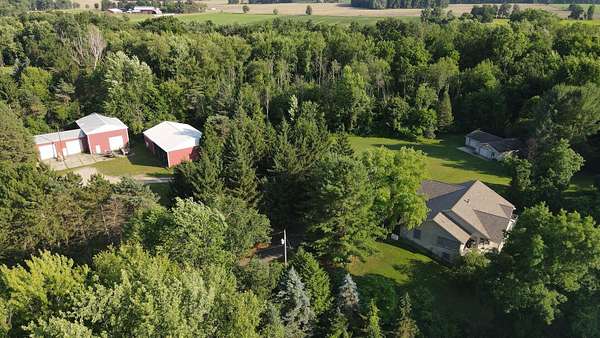 Once in a lifetime opportunity! 5BR 3.5Bt custom built ranch on 10 acres between Lansing & GR. Open floor plan, lots of natural light in LR overlooking rear deck & private backyard. Check out the pond & firepit. Primary is separate from living area, large WIC & bath with whirlpool tub, plus private deck. 3 additional main floor BR's. One has sunroom feel, one could be home office with bay window & window seat, one more private. Main floor laundry. Lower level is walkout. Giant Rec room has wet bar. Additional BR or office. Tons of storage, closets, cold cellar. Full bath has sauna. Check out workshop with exterior access. 2 car att garage. Whole house generator. Bonus 24x32+20x24 pole barn! Heavy duty users check out 32x56+40x48 pole barn & 40x60 barn/covered storage. Tons of potential!
