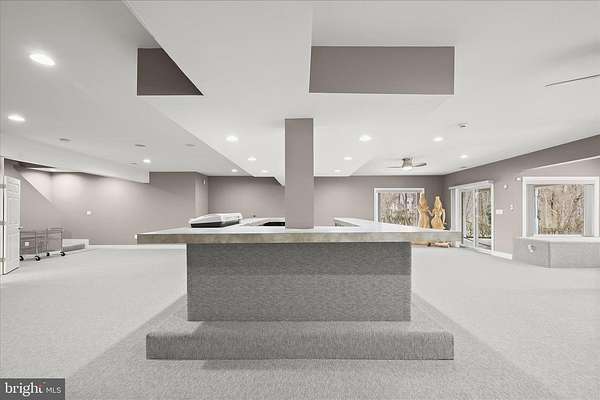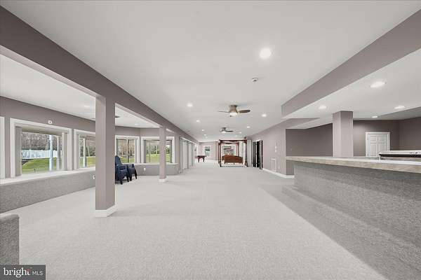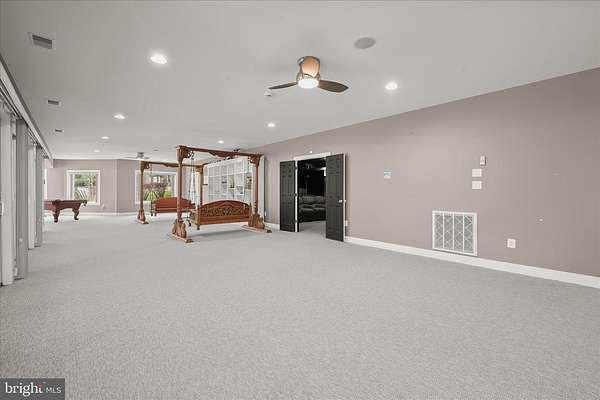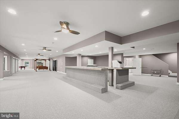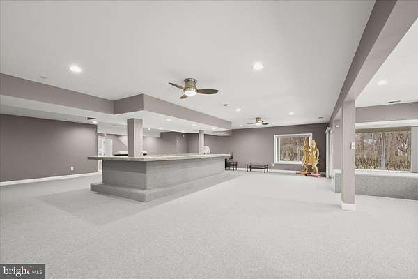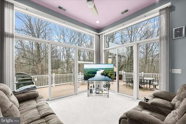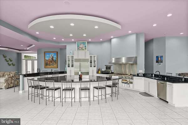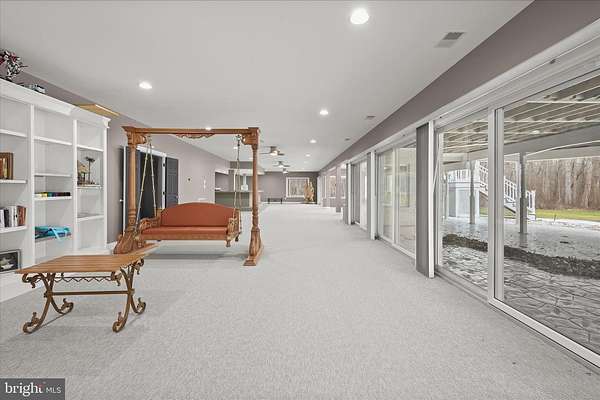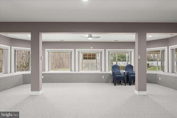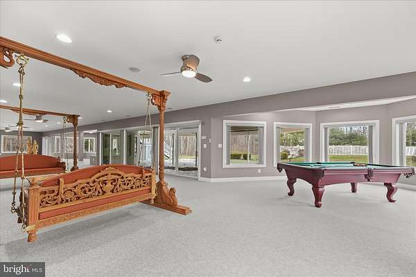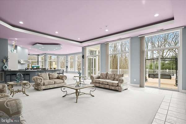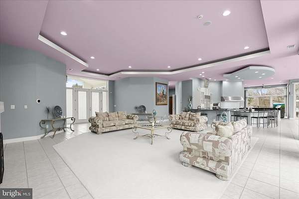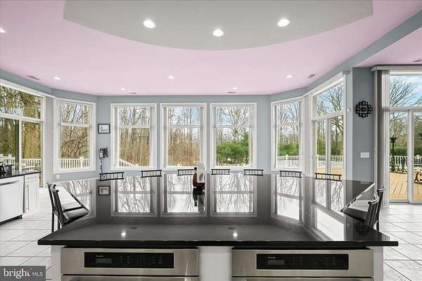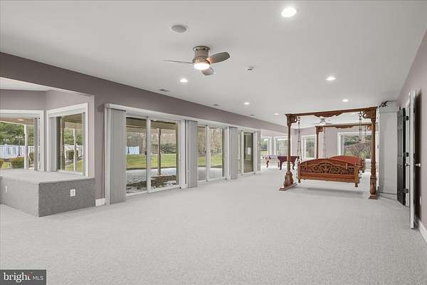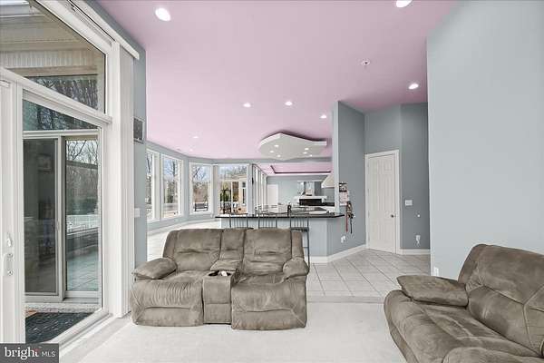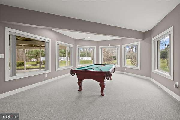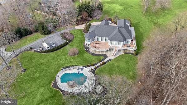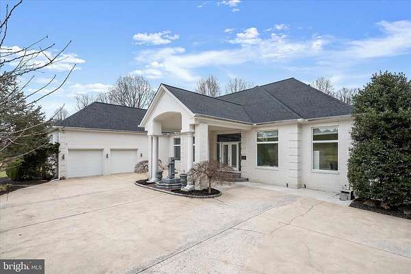 Resort-Caliber Custom Rancher with Architectural Drama, Chef's Kitchen & Private Pool Oasis Custom quality meets resort-style living in this exceptional rancher, thoughtfully designed by a builder and interior designer and set upon a very private, landscaped setting. Built in 2000, this 4-bedroom, 4-bath home offers over-the-top craftsmanship, dramatic architectural details, and seamless indoor-outdoor living. The main level features soaring 12-foot ceilings, 8-foot solid-core doors, Anderson casement windows, and an extraordinary abundance of natural light through 11 Anderson sliding doors. The heart of the home is the chef's kitchen-anchored by a striking mushroom-shaped wrap-around island and ceiling cloud with cove lighting-featuring expansive custom cabinetry, dual peninsula bar seating, a divided three-section sink, separate prep sink with filtered and instant hot water, and professional-grade appliances including dual gas Thermador cooktops with griddles, two ovens, warming drawer, dual range hoods with warming bulbs, Sub-Zero refrigerator, Bosch dishwasher, and built-in microwave. The living room showcases a dramatic ceiling cloud with cove lighting and a central gas fireplace, flowing effortlessly to the dining area and wrap-around TREX deck. The adjacent family/den area opens to the deck through slider doors, creating a perfect entertaining flow. The main-level primary suite is privately situated in a turret-style space and its own laundry area. Two additional main-level bedrooms include a second en-suite bedroom with new carpet, new private bath, and new built-in wardrobe wall, plus a third bedroom with new carpet. A full main-level laundry room with hook-ups nearby secondary bedrooms adds convenience. The finished attic level offers a private fourth bedroom with three closets. The fully finished, full-daylight walk-out lower level is an entertainer's dream, featuring a recreation room with multiple sliders, the fourth full bathroom for guests, billiards area in the turret, a central wrap-around wet bar/kitchenette, theater room with risers, finished storage room, speakers and multiple ceiling fans. Outdoor living rivals a luxury retreat with a heated saltwater pool and spa, expansive stamped patios and walkways, outdoor pizza oven, wrap-around deck, water fountain, stone garden walls, vegetable garden with water service, sprinkler irrigation, multiple lamp posts, and professionally up-lighting around the home and on evergreen specimen trees. Additional features include a private drive, porte cochere with drive-under access, two added side parking areas, and a 2-car side-loading garage with service door. Zoned electric heat pump and central A/C, gas hot water, public water, private septic, and over 220 recessed lights throughout complete this one-of-a-kind offering. A rare opportunity to own a truly distinctive home designed for elevated everyday living and unforgettable entertaining. Please remember to remove shoes and lock up all doors. Thank you for visiting!
