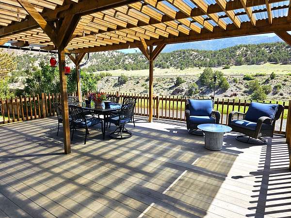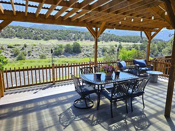 A relaxing live water retreat just 15 miles from Salida, Colorado featuring 400 feet of private Arkansas River frontage. Immaculately maintained home on 9 acres featuring 1924 square feet of living space on one level including 3 bedrooms, 2 bathrooms, and an office. Spacious north facing deck with a pergola overlooks the river and provides summer shade. Large back yard with lush vegetation, a small coy pond, and privacy fencing. An oversized three car garage is steps away from the house. Easy river-level access for fishing, boat put in/take out, or lounging by the firepit and enjoying the privacy or your private river retreat. The level terrain affords plenty of room for horses, an arena, or additional outbuildings. Access to public BLM and National Forest land is less than a mile away and provides additional river access, hundreds of miles of trails and jeep roads, and thousands of acres of public land to hike, hunt, and explore. Wide open views in all directions including the Sangre de Cristo Mountains and more public land across the river. There is no home owner's association, covenants, or conservation easements on the property.