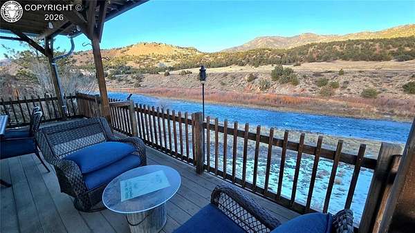 Welcome to your private slice of Colorado country living. This 3 bed, 2 bath home plus office (or potential 4th bedroom) sits on 9 acres with approximately 400 feet of private Arkansas River frontage-an increasingly rare opportunity to own land, water, and freedom in one remarkable property. Designed for both comfort and functionality, the home features an updated kitchen and refreshed bathrooms, complemented by durable tile flooring throughout. Large windows invite in natural light and frame peaceful views of open pasture, the flowing river, and the stunning Sangre de Cristo Mountains beyond. Public BLM and National Forest lands are less than a mile away, offering additional river access, extensive trail systems, jeep roads, and vast acreage for hiking, hunting, and outdoor recreation. Enjoy wide-open views in every direction. The property is free of HOA, covenants, and conservation easements. The land is ideally suited for a true farm-and-ranch lifestyle, with ample space for horses, cows, chickens, and other farm animals. A detached 3-car garage provides plenty of room for vehicles, equipment, and storage, along with dedicated RV parking. A charming old log cabin currently used as a storage shed could easily be converted into a bunkhouse. Whether you're riding, fishing from your own riverbank, or watching livestock graze at sunset, this property offers a rare blend of productivity and peace. Conveniently located just 15 minutes from Salida and 45 minutes from Canon City, this property is ideal as a full-time residence, hobby farm, or recreational retreat-where river frontage, mountain views, and Western living come together.