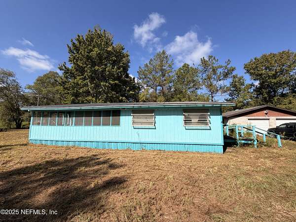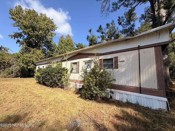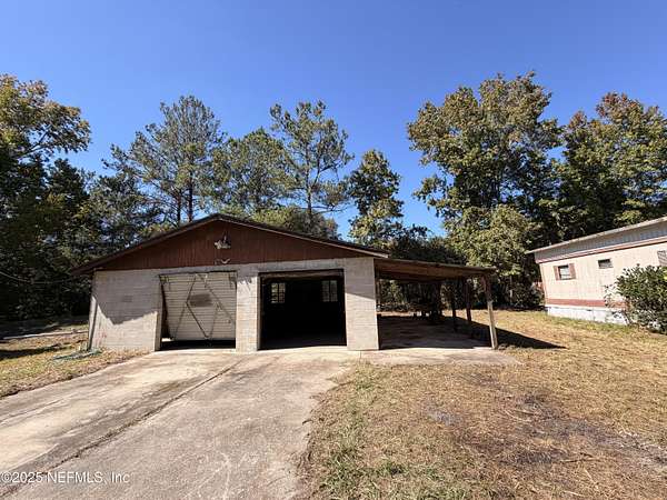 Nestled in rural Bryceville Nassau County (near intersection of County Roads 119 and 121) is a 3 acre lot with a partial heavily wooded large pond, providing quiet privacy from the main road. It has 2 mobile homes, each with a concrete slab, electric, well and septic tank. Shared working well. Also, an oversized concrete block 2 car garage with an attached carport (for your mower, boat, motorcycle and atv). Although the two homes require renovation, the lot is a perfect canvas to create your personal country paradise.