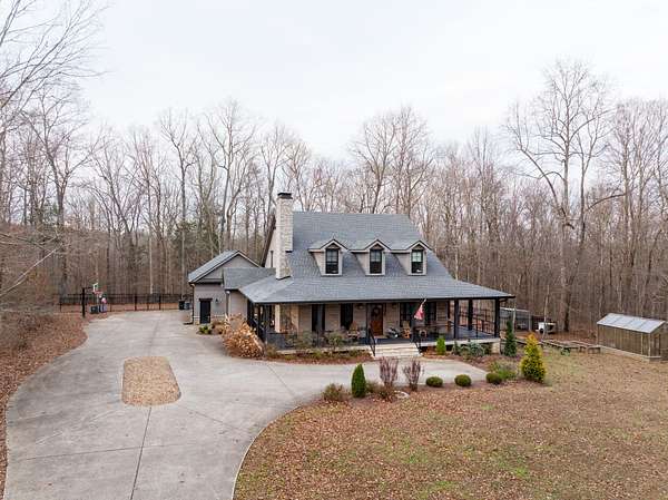 Escape to this serene and private farmhouse just 30 minutes from downtown Nashville set on over 2 acres. A spacious 6-bedroom, 4-bathroom family home with a dreamy wraparound porch, a 3-car garage, and a fenced backyard for children and pets to safely play. This property backs up to a private wooded land that will not be developed. Just minutes from highly ranked Burns Elementary and Middle schools and minutes from the beautiful hiking trails of Montgomery Bell State Park. A whole-home water filtration system. Built-in speakers to enjoy music whole-home entertaining. You won't want to miss this truly special home on one of the most beautiful and desirable streets in Dickson County.
