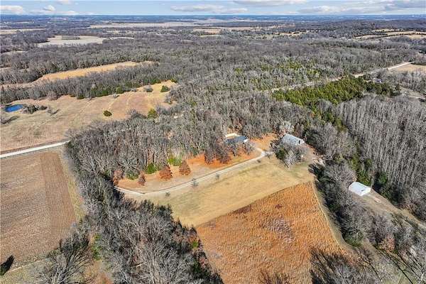 Tucked away at the end of a long, tree-lined driveway, this charming 2-bedroom, 2-bath ranch-style home offers the perfect blend of privacy, comfort, and country living on 7.7 mostly wooded acres. The home features an attached one-car garage, a huge storm shelter, and a newer roof installed approximately three years ago. Inside, you'll find brand-new carpeting in the living room and both bedrooms, beautiful hardwood floors in the kitchen and dining area, new vinyl flooring in the laundry room, and ceramic tile near the rear entry. The interior has been thoughtfully refreshed with updated paint throughout, including walls, trim, doors, ceilings (with acoustic ceilings removed), and updated kitchen cabinets, countertops, and backsplash. Step outside into the front yard and feel the freedom of privacy as you're surrounded only by nature. In the back area you'll enjoy the large north-facing patio and enclosed outdoor area--perfect for shaded summer relaxation and added privacy. The property also includes two out-buildings, including a very large Quonset hut with an air-conditioned office and a half bath, as well as a fenced hen house ideal for raising chickens and enjoying fresh eggs. Wildlife abounds, with frequent sightings of deer and turkey and an abundance of hummingbirds in the spring and summer, creating a serene and peaceful setting. The home is on a well-maintained septic and well system and offers excellent potential for future expansion, including the exciting possibility of adding a third bedroom and primary en-suite. Conveniently located just 10 miles west of Ottawa, Kansas, with easy access to Highway 35 and Highway 59, this secluded country retreat offers both tranquility and a commuter-friendly location. If you've been searching for the perfect private escape, this is the one.