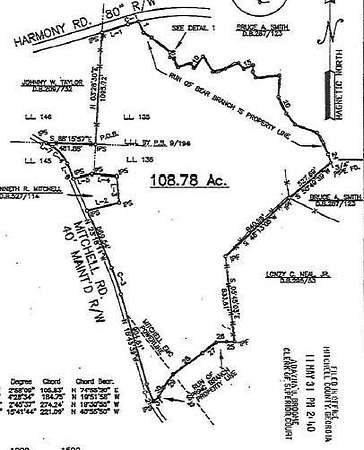 Wellkept Farm House and 112 Acres of balanced property consisting of field areas, woods, trails, and fish pond. Excellent Hunting! I have seen the Turkeys and I have seen the deer! The owner can testify to the quality of Dove Hunting on this tract! Tract is easy to divide. Located in Southern Mitchell County, 24+- Miles North of Thomasville GA. On a quiet country road behind a split-rail fence, sits the lovely farmhouse that dates to the early 1900's. The property has a 1,712 SF 3Br/1Ba farmhouse that was renovated in 2018. The home has a large, spacious porch and a cozy, nostalgic feel. The front door opens into a wide "shotgun" hallway that spans the length of the home. On the sides of the hallway are three large bedrooms, a spacious living room and out of the living room is a kitchen and laundry room that opens onto a back porch. The home has twelve-foot ceilings and heart pine on the floors, walls, and ceilings. The home is currently rented for $1,150 per month. The tenants require a 48-hour notice to show. (Security) There are also two small storage buildings on the property. The breakdown of the land is as follows: 45 acres of Tifton soil crop land, with 29 acres of peanut base, 25 acres of ten-year-old super genetic MCP loblolly pines, 20 acres of ten-year-old super genetic longleaf pines, 2 acres of pecan trees , 1.5 acre pond. (With one huge Softshell Turtle that we know of!) This property brings in the Dove! Deer and turkey roam freely and it is a dove hotspot when the farmland is planted in peanuts or sunflowers (1/2 in Peanuts 1/2 in Cotton this year). The property currently has a gross income of around $20,000 per year. An additional $5,000 per year could be generated through the sale of longleaf pine straw. 12+/- Mature Pecan Trees Surround the Home offering summer shade and winter sun! Pear Trees, a Fig tree and other mature plantings. Property in Ag Covenant to reduce taxes. Buyer will need to assume. Youtube Video (TENANT IN HOME MOVED 10/2025)