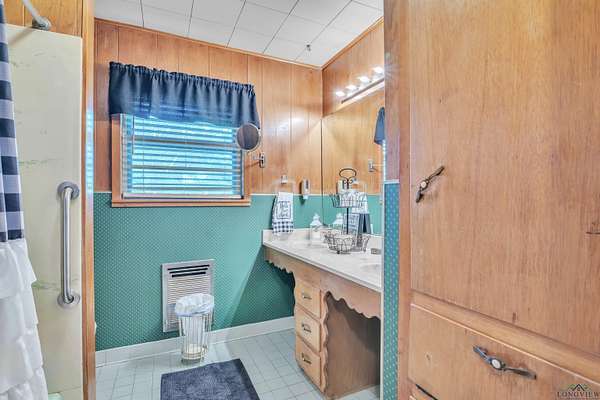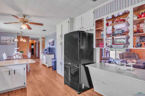 - Ceiling Fan, Paneling, Shades/Blinds, Vinyl Flooring