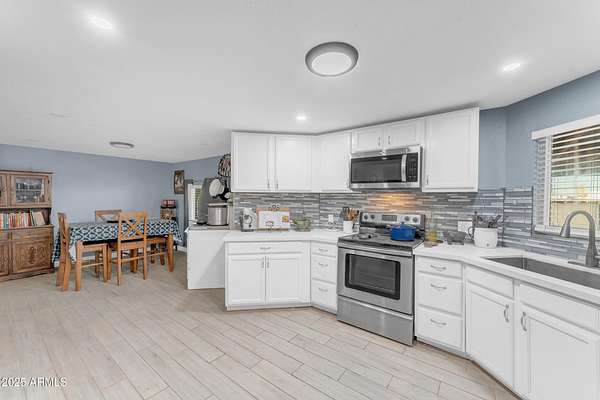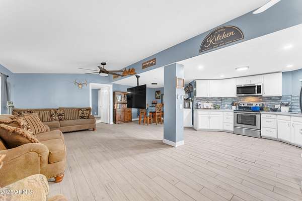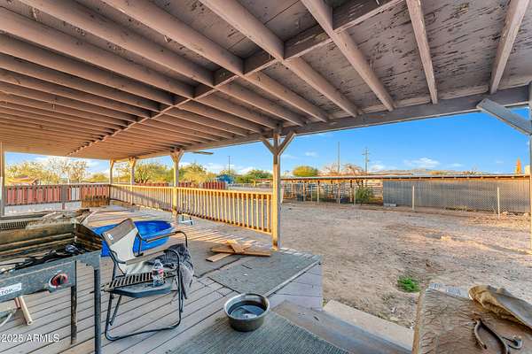 PRICED TO SELL ON NEARLY 1.5 acres in Buckeye with its own private entry! Inside, you'll find an open layout with wood-look tile floors and a bright kitchen featuring white cabinetry, stainless steel appliances, and a custom backsplash. The updated primary suite offers a spacious layout and walk-in shower, with comfortable guest rooms and a second full bath nearby. Enjoy mountain views from the large patio and the freedom of no HOA - with plenty of space for RV parking, horses, or future projects. A great opportunity to enjoy peaceful desert living with privacy and convenience, just minutes from I-10 and shopping.