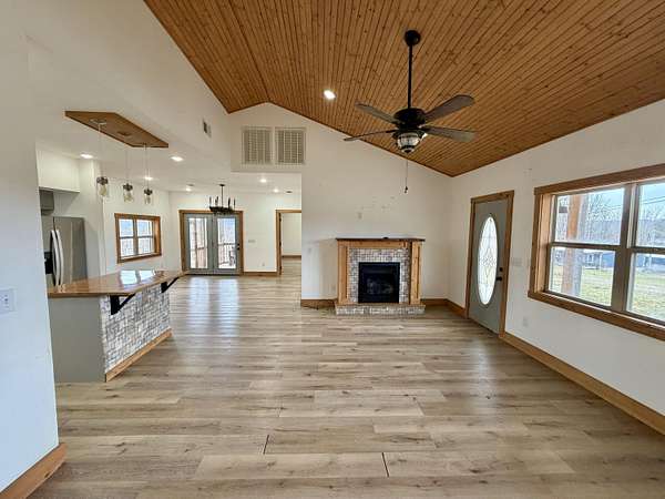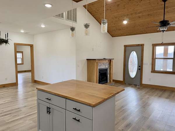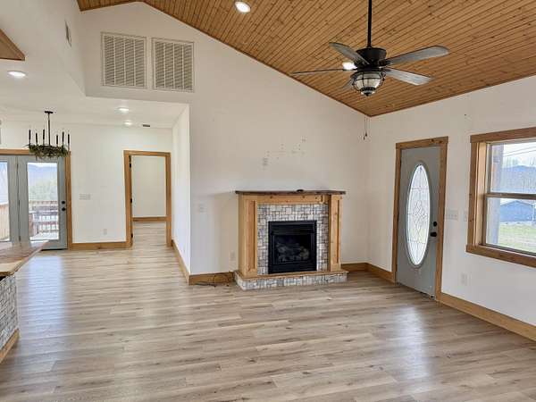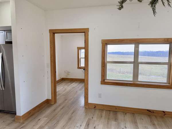 If you are looking for quite country living with an open view of the countryside and farms then stop! Take a look at this beautiful bedford stone home that has been remodeled to with all amenities that you could want. Large open floor plan for kitchen/dining/living room. 3 large bedroom with large walk-in closets for each bedroom. 2 full baths with one walk in shower. This home has raised ceilings that brings the newer modern living vibe. There is a large laundry room tied with large pantry off of the kitchen for functional daily living. This home boast 3 coverd porches to sit out relax and enjoy the view. One cover screened in porch to enjoy the nighttime atmosphere without the insects. Outside boast a 576 sq ft 2 car garage with a shed attachment. There is a poured concrete pad to add to the property. This can be used as a base for extra storage shed, provide fencing to make a dog kennel. If you are wanting to start your own garden ther is lots of room to have a large garden . Ample ground to have chickens, goats, sheep or other livestock. This home has too many things to offer to list. Even comes with 2 cute built in bed.
