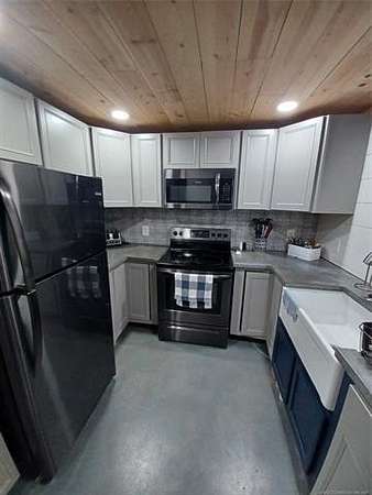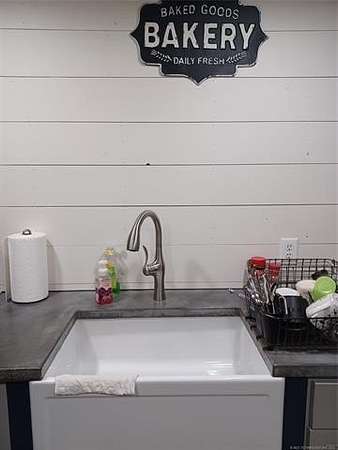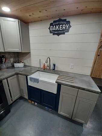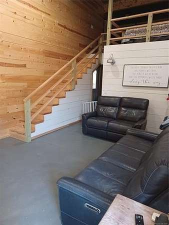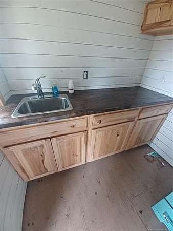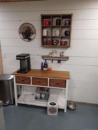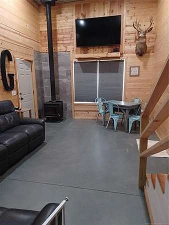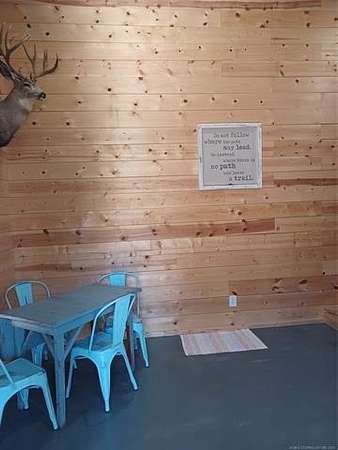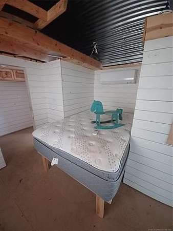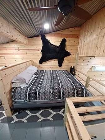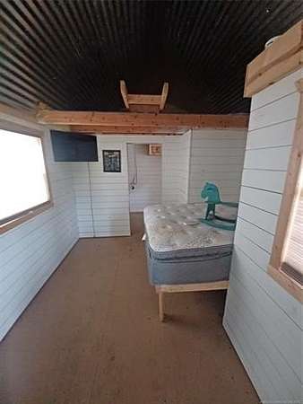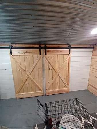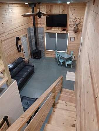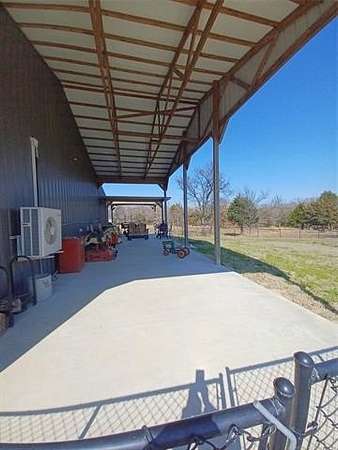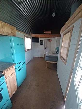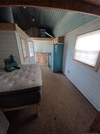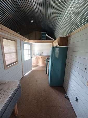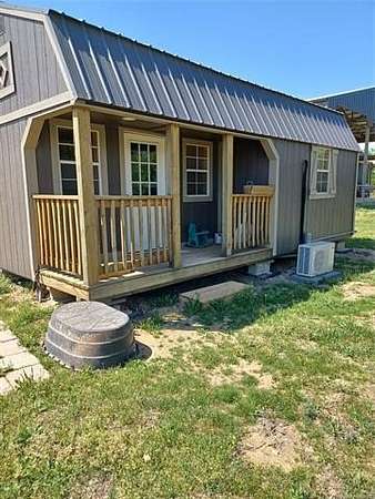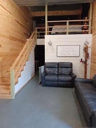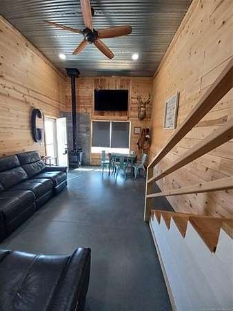 Come see this SPACIOUS barndominium that adjoins Corp land. It is 60' x 75' with a 20' x 25' open bay area for a RV and storage. Living quarters are beautiful with living room with high ceiling and wood burning stove, kitchen with all appliances, and full bathroom. Upstairs is spacious bedroom with separate closets. Covered porch is spacious and provides plenty of room for entertaining or sitting and enjoying this beautiful land and nature. Four twelve foot overhead doors that lead to LOTS of space. Also a adorable 12 X 24 finished tiny house with appliances. Property adjoins Corp land. A short beautiful walk or ride to water. Located close to town of Eufaula and schools. COME SEE!