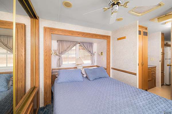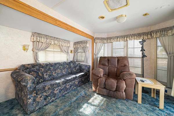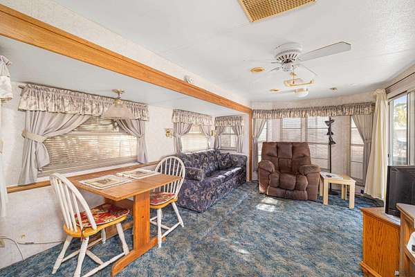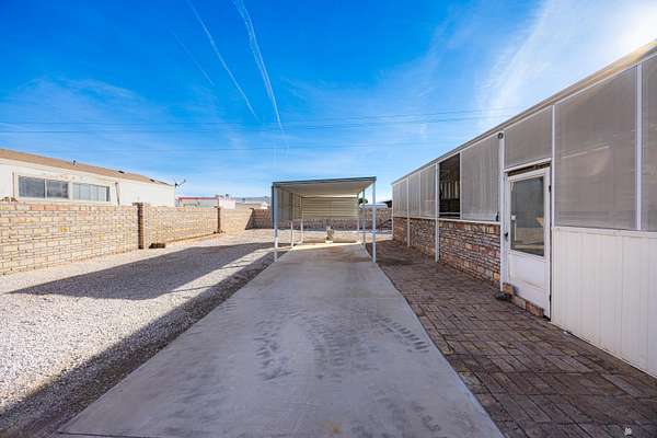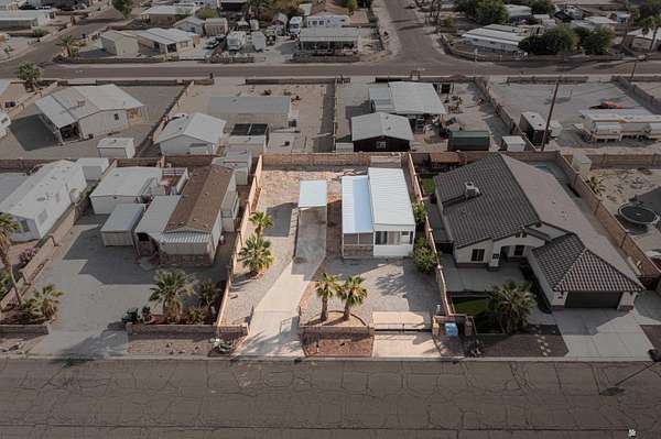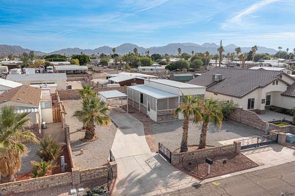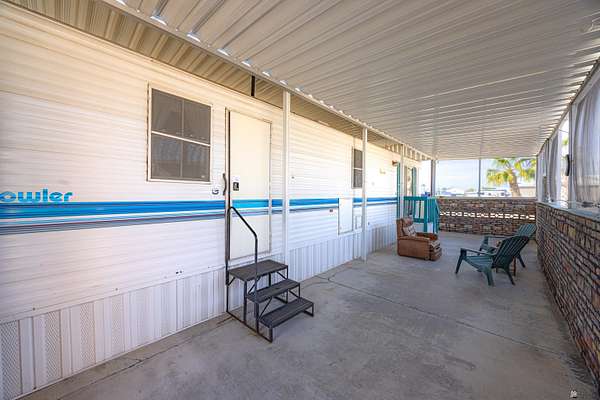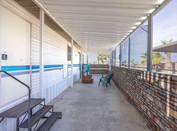 Nice and well-kept, this property is set up as a great winter retreat and includes a 1996 Prowler travel trailer that will remain with the property; the trailer is not affixed to the land, appears to have been built in 1995-1996, and buyer is responsible for obtaining title. The trailer is covered by an RV port with an awning and an extended enclosed patio, providing comfortable outdoor living space. Additional features include an extended concrete driveway with a separate carport, double wrought-iron gates, and two storage sheds. A new septic system was installed in December 2025. The property offers two RV hookups with two electrical connections, one of which is 50-amp; the trailer is currently connected to 50-amp electric, sewer, and water.
