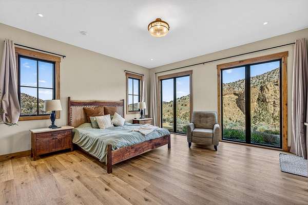 I am Painted Rock. Nestled w/in the exclusive Ranch at the Canyons, I was created to honor both nature's grandeur & the bonds of family. Cradled by 2.5 miles of private Crooked River frontage, framed by the timeless cliffs of Smith Rock, I offer a sense of peace that few places can match-just 20 minutes from Redmond Airport, yet worlds away in spirit. I've been home to two families-each one adding to my story, each one cherishing my views, my quiet mornings, & my golden sunsets over the canyon. I was designed w/ intention & heart, built to welcome more than one generation at a time. My main level holds two primary suites, each in its own private wing, allowing comfort & independence while still keeping loved ones close. In my great room, walls of glass open wide to let the high desert light pour in, merging the warmth of my interior w/ the vast beauty beyond. I am a place where privacy meets connection, where laughter echos off canyon walls and Oregon's wild beauty is celebrated.