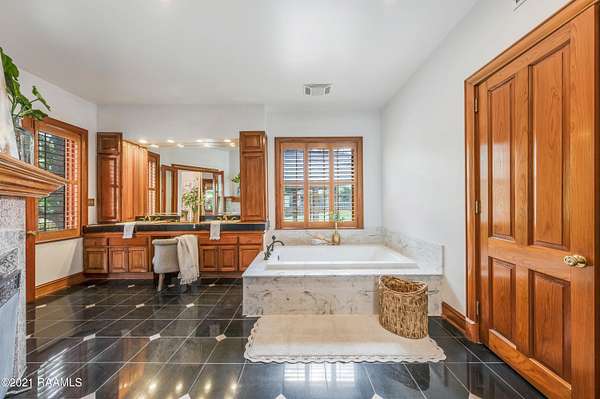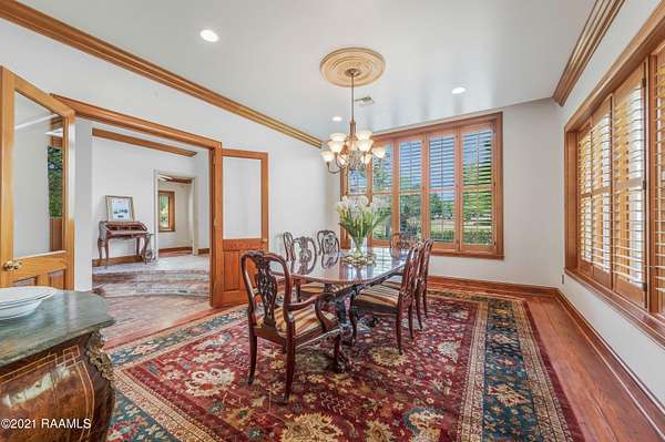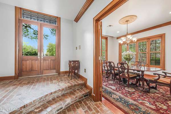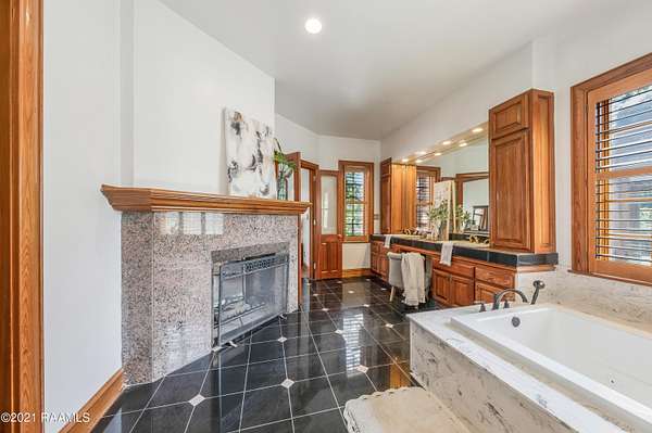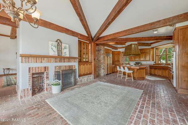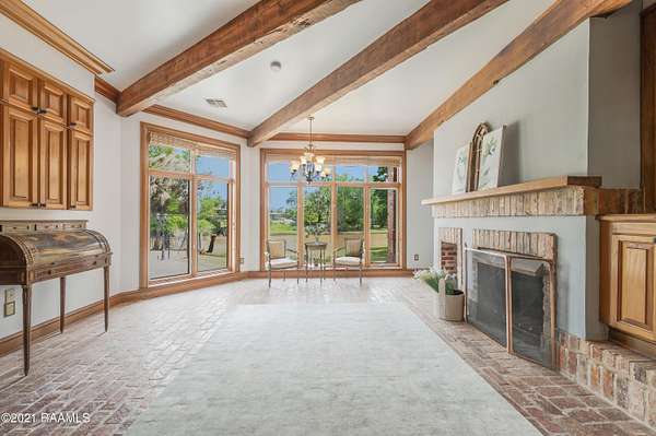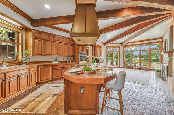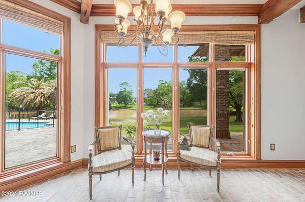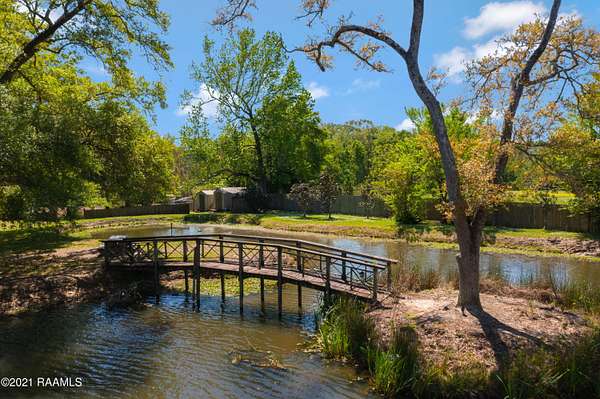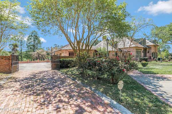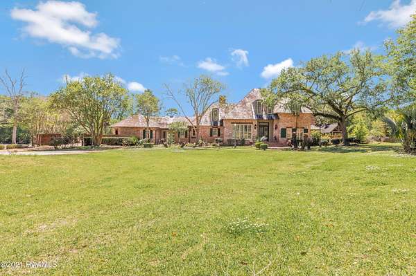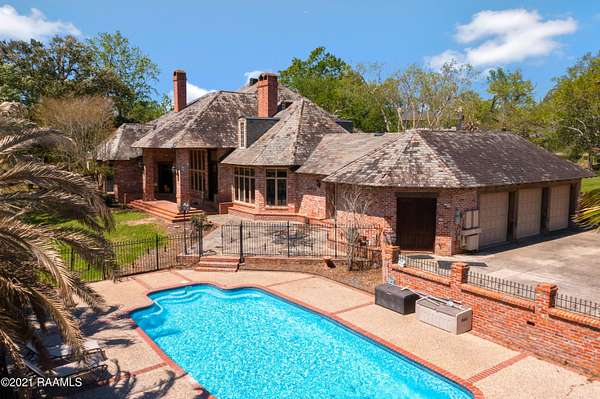 With Acceptable Offer, Seller is Offering Up To $50,0000 in closing costs, rate buy down and or updates! Imagine this ... Coming home to your gorgeous Riverfront French Chateau Estate nestled in peaceful Vermillion Plantation. This majestic home, an architectural award winner, is abundant with custom features spanning 6188 sq ft and is filled with character and an array perfectly appointed amenities. The home is situated on 1.95 acres with a fishing pond in the front, a refreshing pool on the back patio and the Vermilion river in the rear. Entering the foyer, there is a grand formal dining room on the left with two walls of windows with plantation shutters. The right opens into the primary suite, and guest room or office. The great room has a 22' cathedral ceiling with double sided fireplace, windows with ceiling to floor view of the river, and wet bar with built ins. The kitchen is filled with beautiful hardwood cabinets, a large island with dine in seating, sub zero refrigerator, a spacious walk in pantry and opens to the keeping room with another view of the river, fireplace and built ins. Both rooms have beautiful beamed ceilings and Old World style brick floors. The primary suite has french doors opening to the back porch, has a beautiful view of the river, double sided fireplace and opens to the spacious spa like bath with dual sinks, jacuzzi tub, large walk in shower, and extra large walk in closet. Upstairs there are five large bedrooms, four baths and long balcony overlooking the great room. The home features long leaf wide plank pine floors, beautiful wood beams in various areas of the home, hardwood cabinets with leaded glass fronts, and tons of storage throughout. There is an oversized three car garage with utility room. Outside there is the fishing pond with bridge, a covered gazebo, very spacious yard with mature trees including oak, cypress, palm, and crepe myrtle, and 200 feet of Vermillion River frontage.