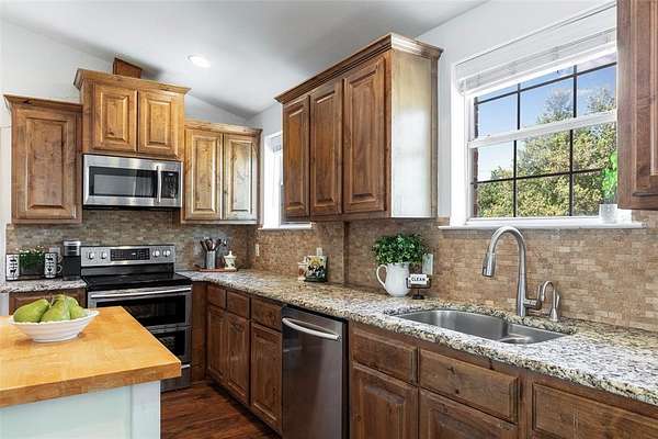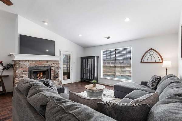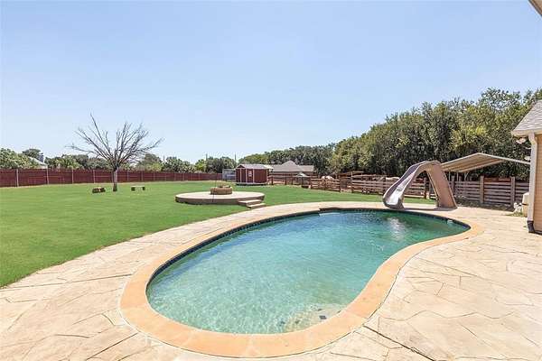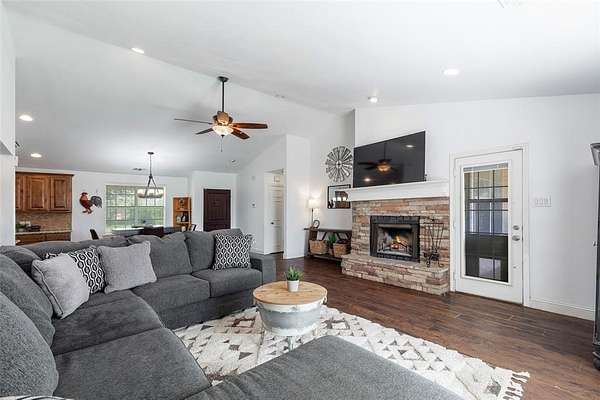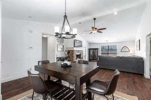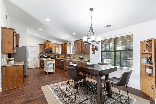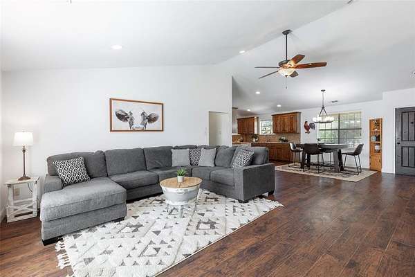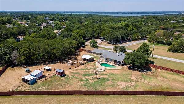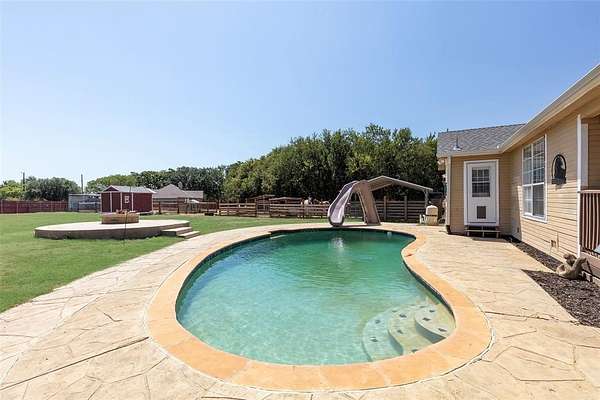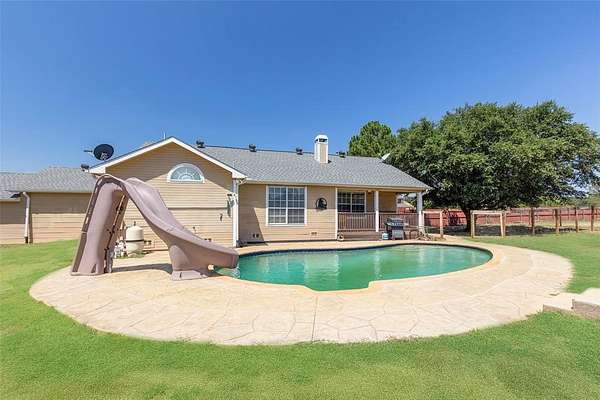Charming Country Home on 2 Acres with Pool & Lake Access Nearby! This inviting country retreat offers the perfect blend of privacy and convenience, situated on 2 acres with easy access to city amenities. The well-designed floorplan features 3 bedrooms, 2 full baths, and an open-concept kitchen, dining, and family room -- ideal for both everyday living and entertaining. A bonus man cave and 2-car garage add versatility and functionality. Outdoors, the property is fully fenced and cross-fenced, making it ready for livestock, chickens, or gardening. The backyard is an entertainer's dream with an amazing pool, firepit area, and plenty of space for recreation. Whether you're relaxing poolside, enjoying evenings by the fire, or creating your own homestead, this property offers endless possibilities. Located just over a mile from the Oak Point boat launch, you'll love the quick and easy access to the lake for fishing, boating, and weekend fun.