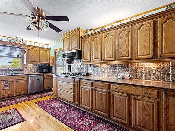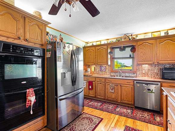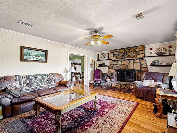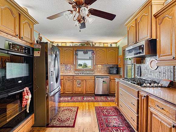 Beyond the home, the property continues to impress with its features tailored for those who love country living. A large barn equipped with horse stalls is perfect for equestrian enthusiasts or livestock care, while cross-fencing and gated areas ensure easy management of animals. The orchard adds a delightful touch of charm, offering not only scenic beauty but also the satisfaction of harvesting your own fruit.