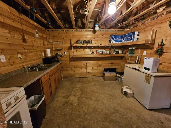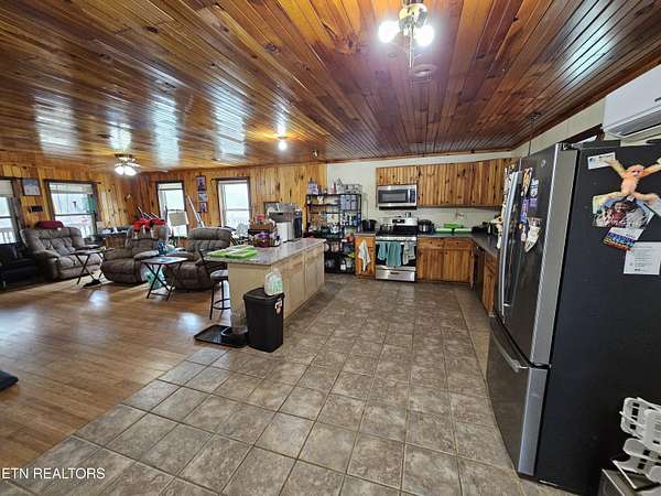 Tucked away in a private, peaceful setting near the breathtaking Big South Fork National River and Recreation Area, this unique property offers the perfect blend of comfort, self-sufficiency, and natural beauty. With 3 bedrooms, 3 baths, and 3,260 square feet of total space (1,630 SF on the main level and 1,630 SF in the basement), this home is ideal for those seeking a homestead lifestyle or a private mountain retreat. The main level features an inviting open floor plan highlighted by warm tongue-and-groove wood ceilings and walls, creating a cozy cabin-inspired feel throughout. The spacious living room showcases bamboo flooring and a fireplace connection ready for either a propane or wood stove, perfect for chilly evenings. The kitchen is well-appointed with island, solid surface countertops, updated appliances, a propane gas stove, and tile flooring, making it both functional and stylish for everyday living. Two bedrooms are located on the main level, each with its own ensuite bath, including the primary suite with French doors providing direct access to the covered deck. A convenient main-level laundry adds to the home's practical layout. Step outside onto the surrounding covered and open decks, perfect for relaxing, entertaining, or simply enjoying the peaceful views. The walk-out basement offers incredible flexibility and is partially finished with a bedroom space, full bath, and a spacious bonus room complete with a propane stove. A dedicated canning room with sink, stove, and deep freezer makes food preservation easy, while abundant unfinished areas provide extensive storage or the opportunity to create a separate living area or in-law suite. Sliding glass doors lead directly outside, enhancing the potential for independent living space. Efficiency and comfort are provided by three high-efficiency mini-split heating and cooling units, and the home also features a new metal roof installed in 2023 along with updated attic beams. Outside, the property is designed for self-sufficient country living. The land includes apple, pear, plum, peach, and cherry trees, along with blueberries and blackberries, plus a garden area with compost space. The lot is fenced and cross-fenced for animals, with a fully fenced yard section for pets. Additional features include RV parking area with 30- and 50-amp service, water, and septic connection, two outbuildings (12x32 barn-style and 10x20), each with double 6-foot doors, circle driveway for easy access, and beautiful natural features including an interesting rock wall landscape Located 15 minutes from the town of Oneida where there is shopping and restaurants, and about 1 hour and 21 minutes from Knoxville, this property offers privacy while still being within reach of city conveniences. With its natural setting, functional outbuildings, and abundant garden space, this property is a perfect opportunity for homesteading, hobby farming, or peaceful country living.